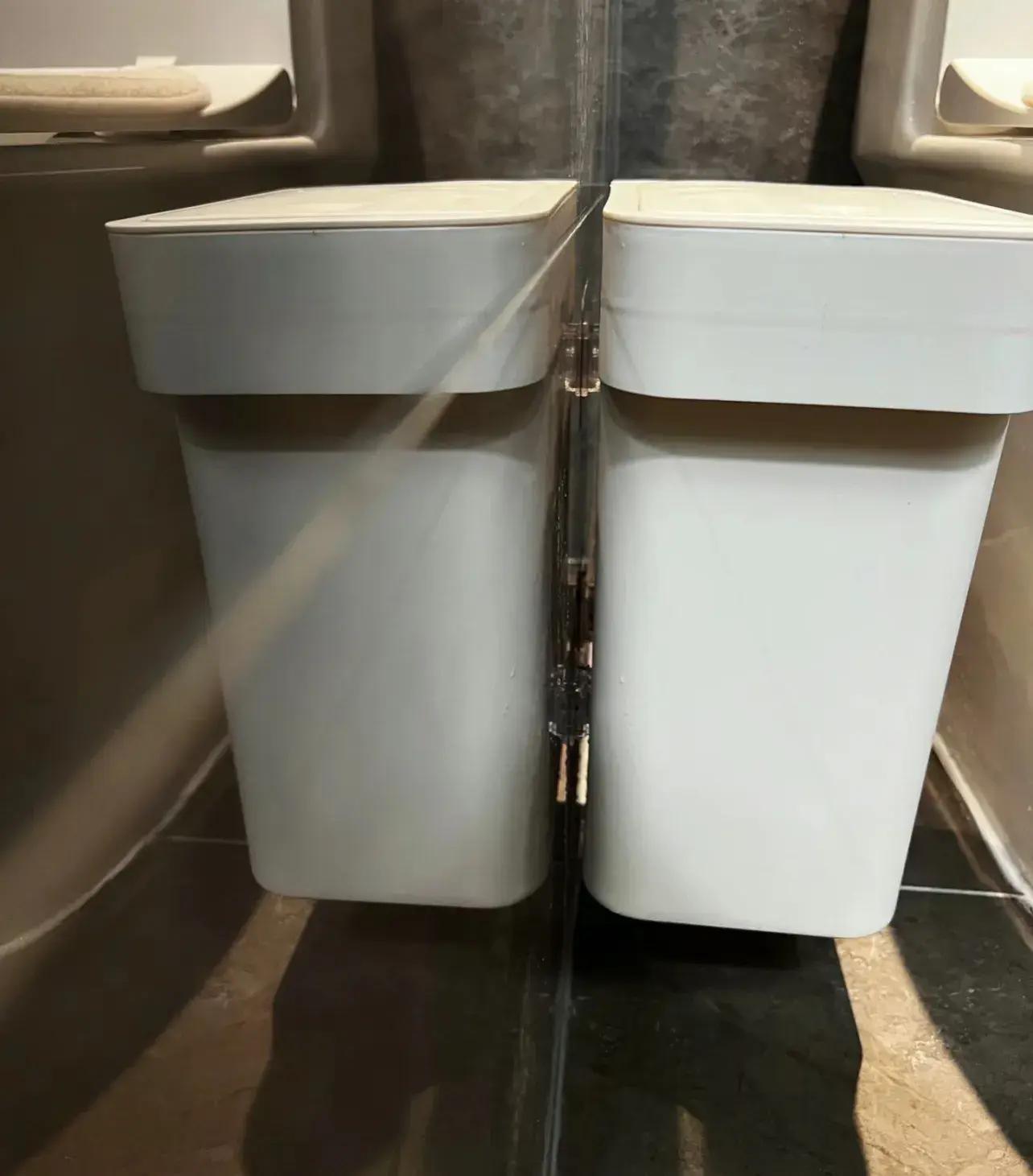 也看過各種隔板上牆放置垃圾桶的方案,說實話,覺得不值,不止是消費降級的緣故,趕上垃圾桶的價格,就覺得不值。