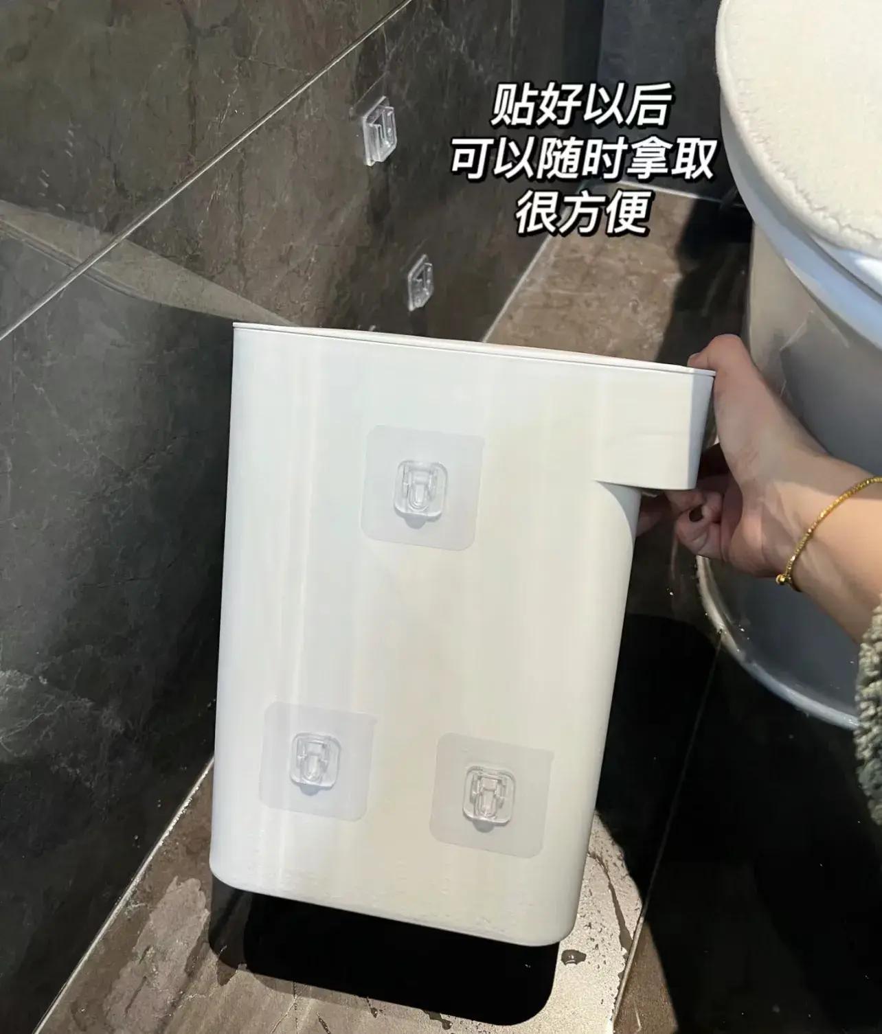這種情況,其實用子母扣就可以,配套的母扣貼在牆上,子扣貼在垃圾桶上,兩三個一組合,就能把垃圾桶壁掛上牆。