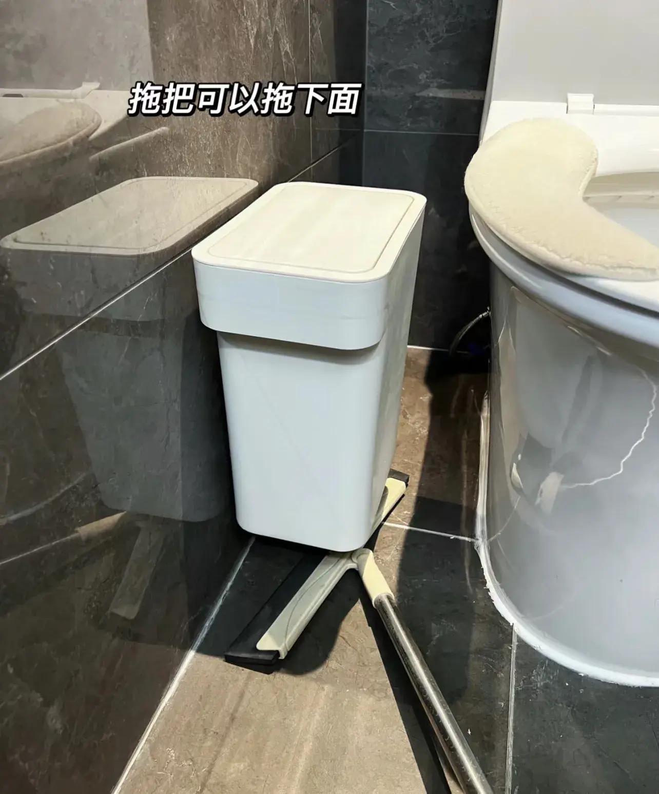 平時衛生間裏的垃圾桶,直接落在地上有死角,清理地面得挪來挪去,非常不方便。