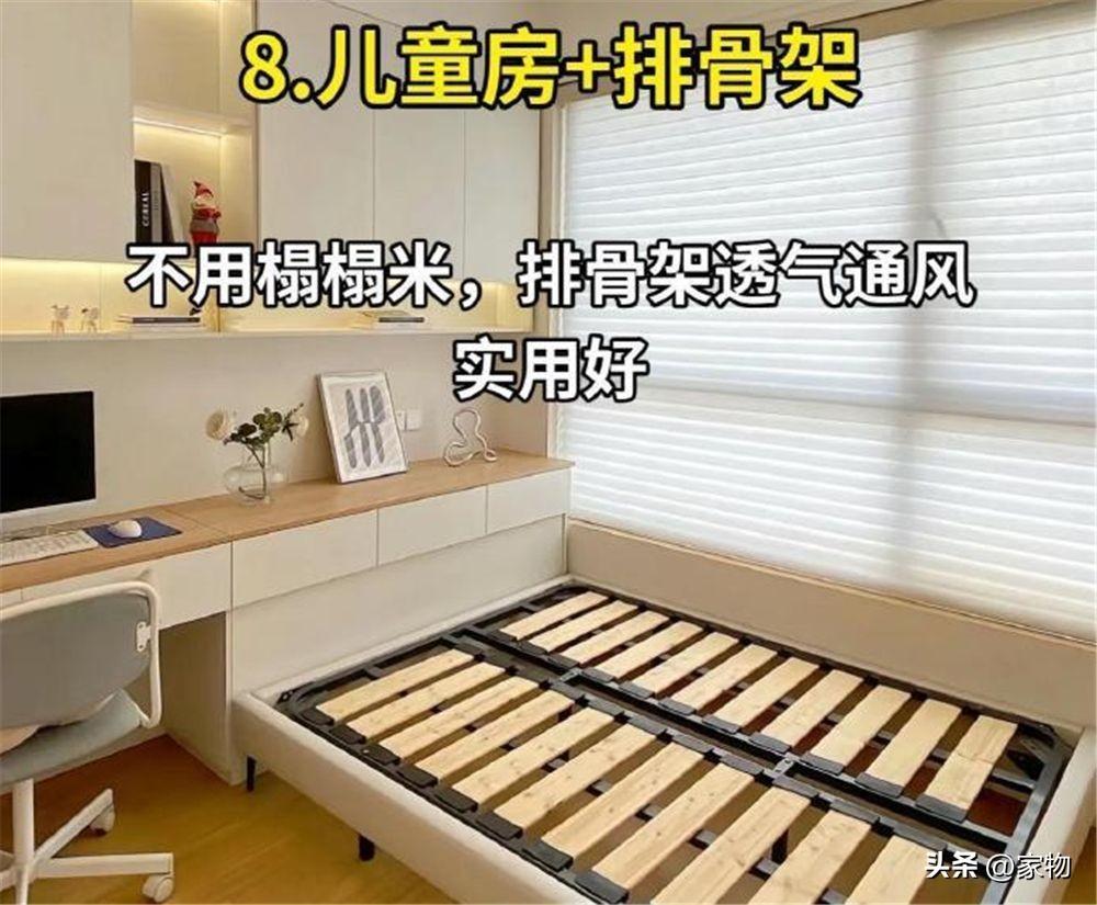 榻榻米牀的問題,實在是太多了,很多人喜歡將次臥室做成榻榻米兒童房,但實際上,普通的排骨架牀搭配定製桌櫃不僅更靈活,睡起來也要比榻榻米地臺舒服很多,個人建議做這種。
