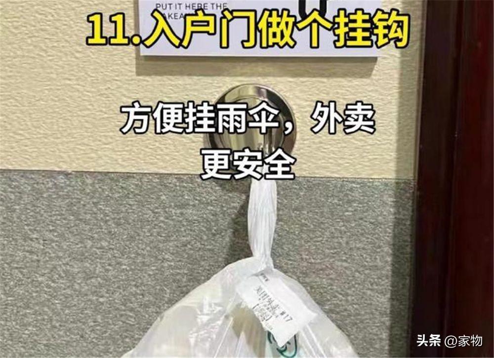家裏的入戶門,門口建議做個掛鉤,一來方便放快遞外賣,二來也可以在雨天隨手掛雨傘,我個人感覺還是挺方便的,也是我家入住兩年時間來,最滿意的地方之一。