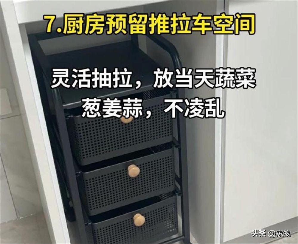 廚房真得有個專門的架子或者小推車這類的收納用具,用來收納各種蔬菜水果、蔥薑蒜等物,而不是將一個個塑料袋放在地上、掛在牆面或檯面顯眼的地方,做完後你會發現,家裏整潔多了。