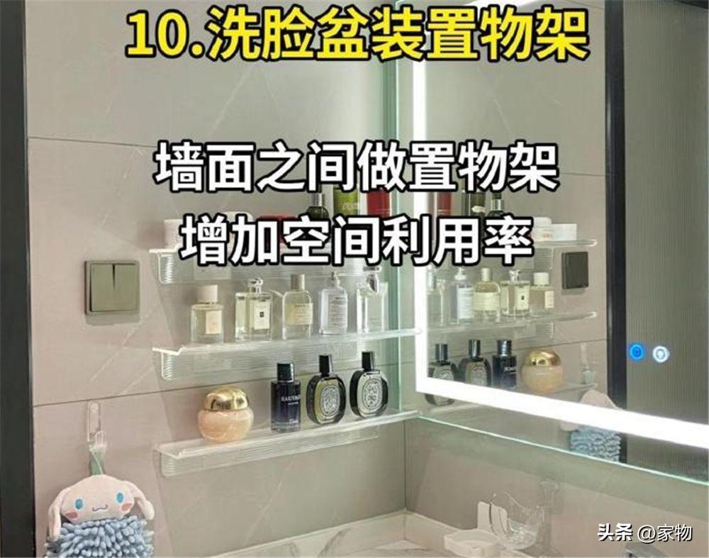 洗臉盆旁邊的牆面縱向空間,其實也能充分利用起來,最起碼放刷牙杯、空氣清新劑這種東西還是沒問題的,白白浪費掉空間,實在是讓人有些於心不忍。