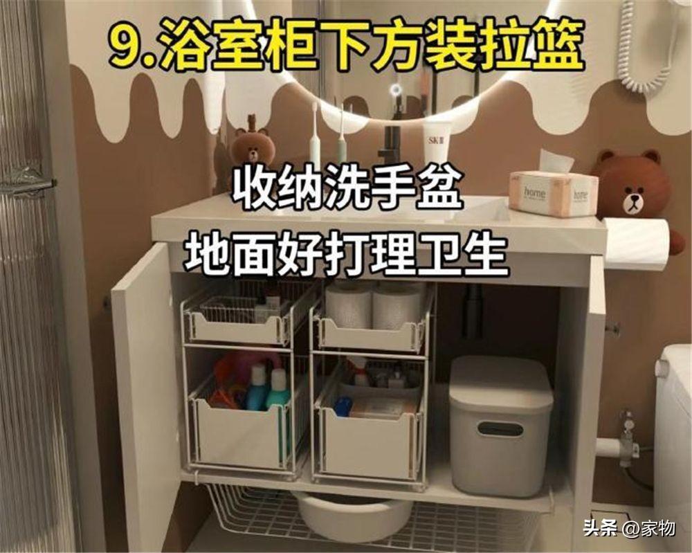 浴室櫃的下面無論是做拉籃還是做抽屜都可以,一來方便收納拿取各種清潔洗漱用品,二來也能將櫃子的深度充分利用起來,比起收納格來說,個人感覺怎麼用怎麼順手。