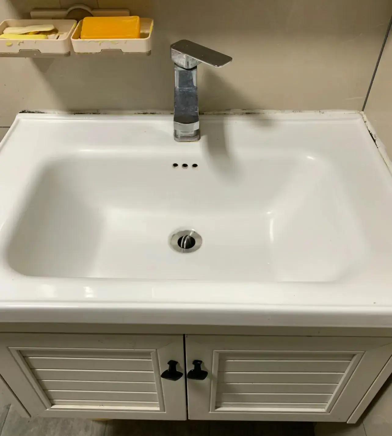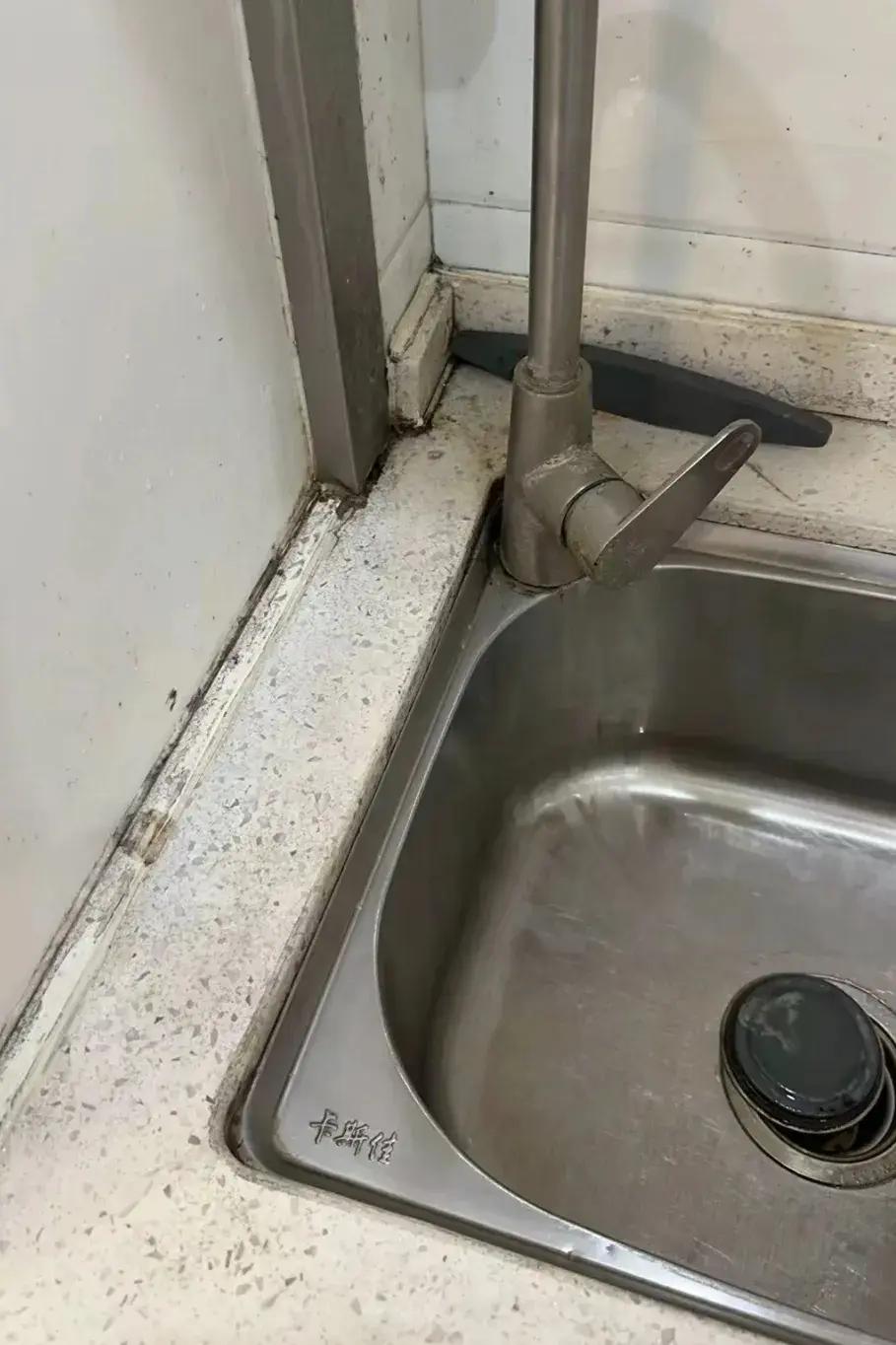 住友@朱林發黴的水槽邊緣和擋水條玻璃膠;