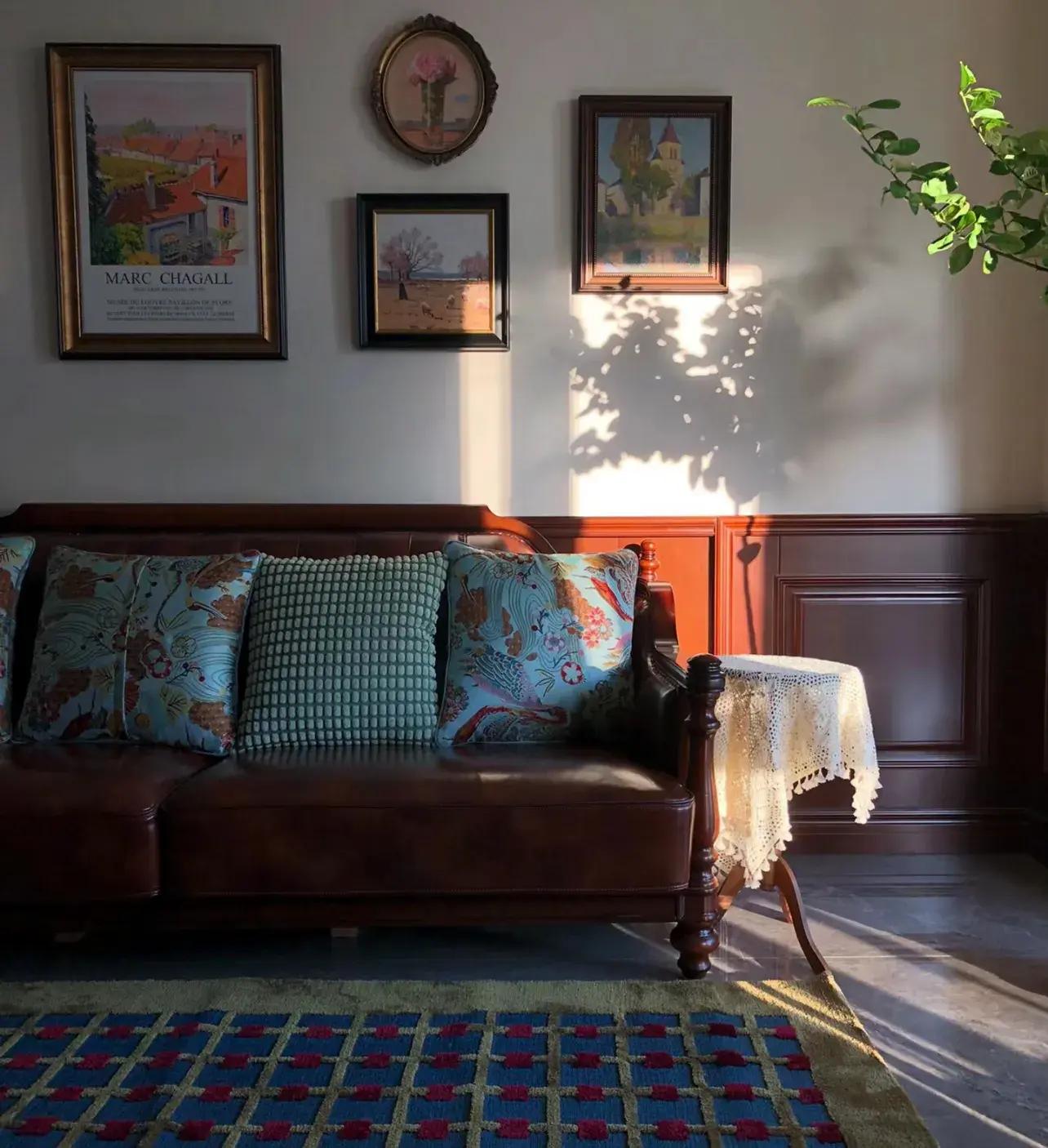 可實際上,屋主家裏是掛的是一些復古的畫,那美式復古的調調就很濃,很出彩。