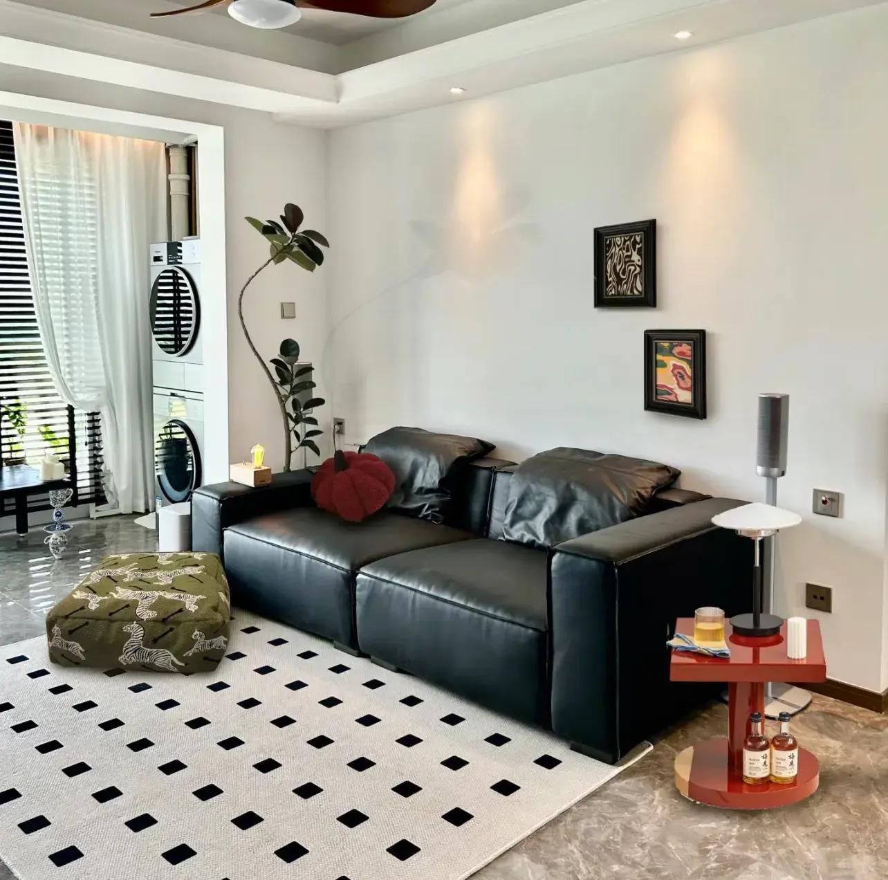 後來,看到了這個不規則的沙發墊,就果斷入手,不僅解決了皮沙發怕髒、怕磨損的痛點,沒有降低沙發的顏值,反倒有提升。