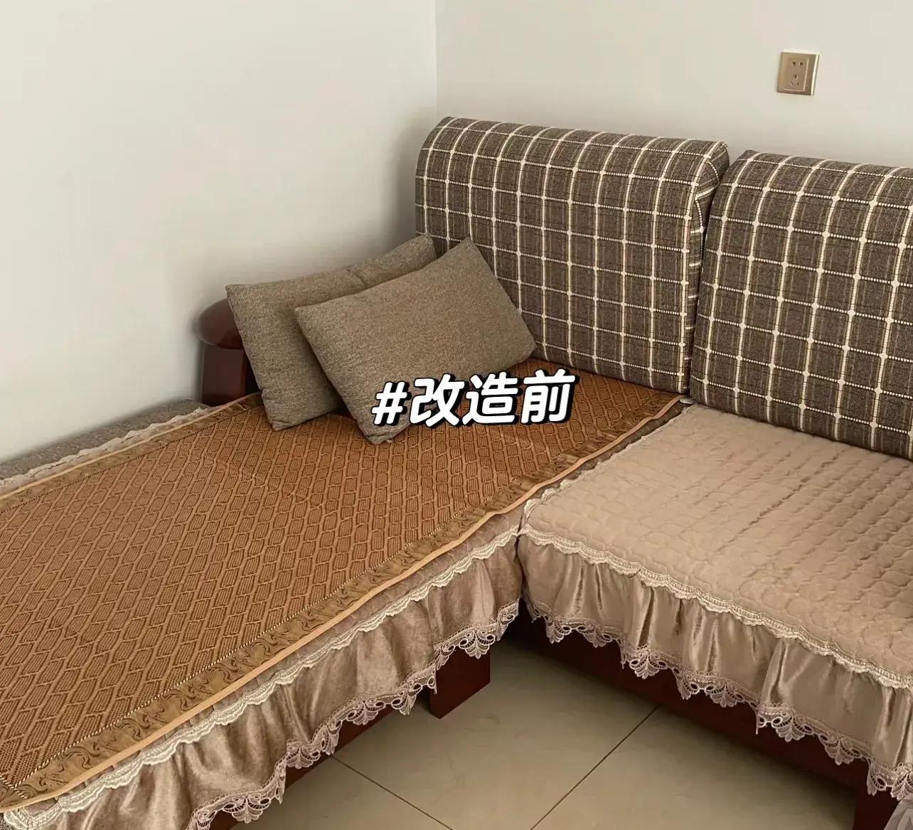 越看越難受之後,給靠墊換了個包套,然後添置了一個沙發坐墊後。