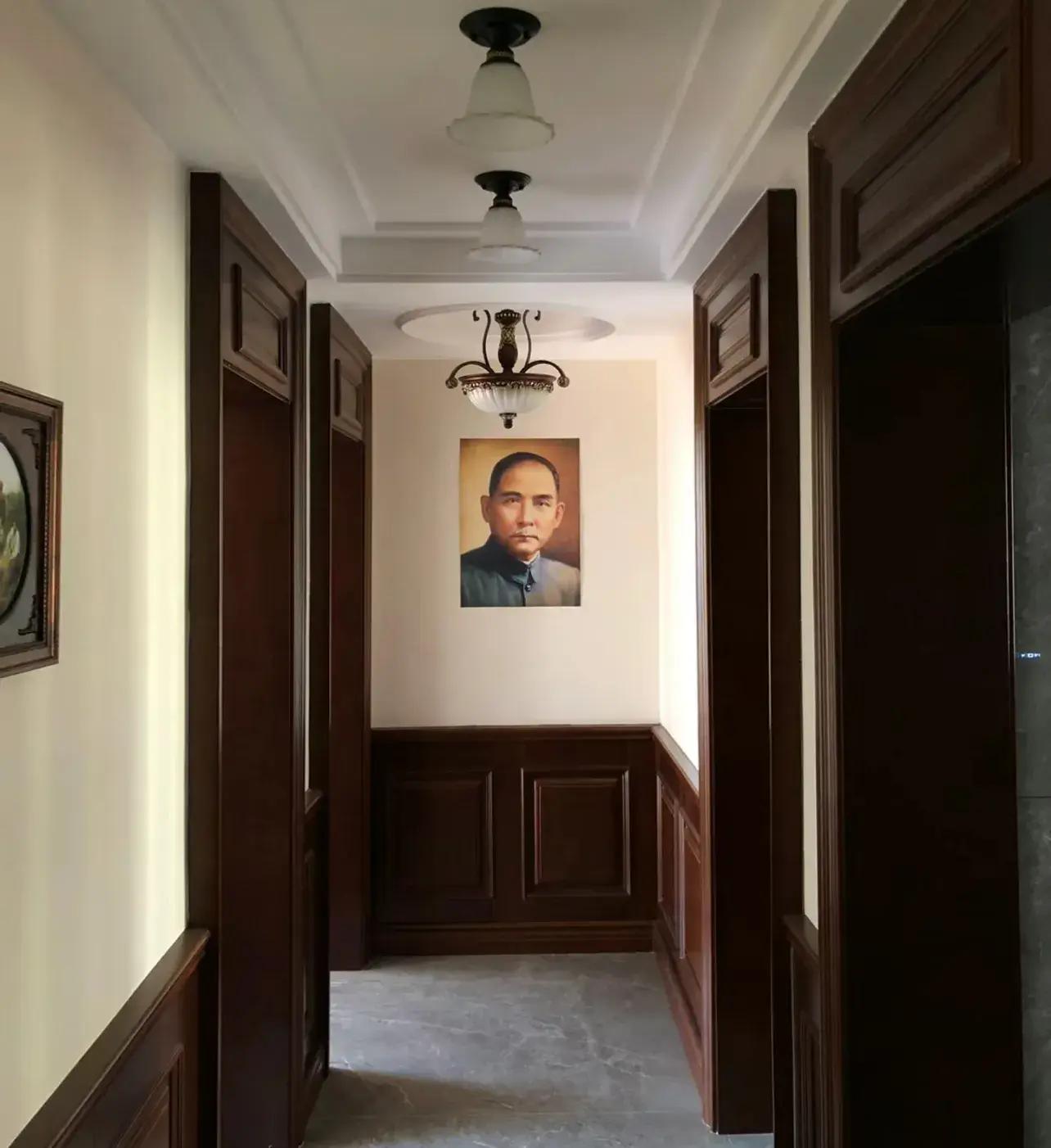 住友@滷蛋 家裏做得美式復古,跟我們電視劇常見的民國風很像,於是屋主就跟網友一塊整活,P了一個偉人像,一下家裏就像是軍統處。