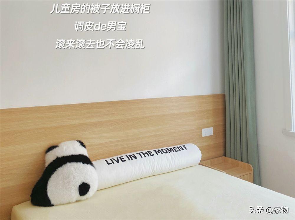 白天孩子在家的時候,我常常會隨手將牀鋪上的被褥塞到衣櫃裏,控制不住孩子上牀打滾,就換個方法,將被子收起來晚上再拿出來,兒童房同樣能長時間保持不雜亂的狀態。
