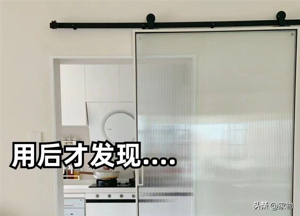 廚房做成穀倉門的形式,完全是跟風裝修的產物,大扇玻璃本身就要比普通平開和推拉門貴一些,裝好後又鮮少開關,因爲真正炒菜用它的時候,它阻隔油煙效果非常差,密封性約等於無,不如做普通平開或者極簡地軌推拉門。