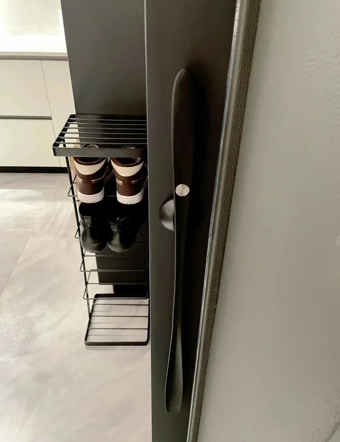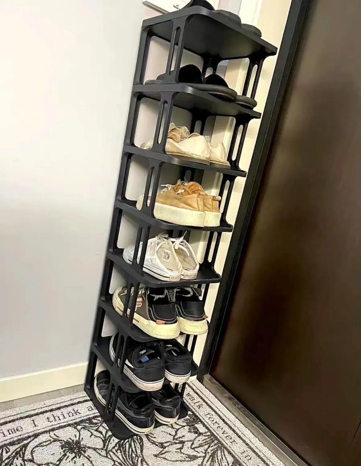 沒有鞋櫃,進門的鞋子總歸得有個地方放,不能全部堆在地面上,這時,選擇牆角高鞋架,比普通的多層架要好很多。