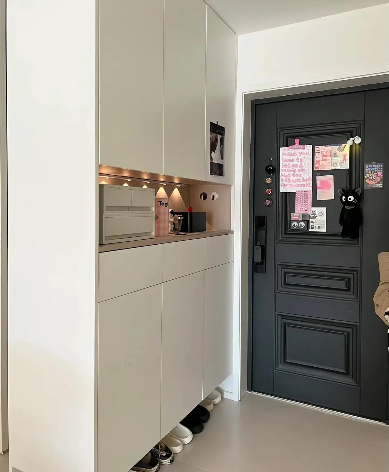 對於懶人,鞋櫃底下留一層懶人踢很明智,進門脫下的鞋子,直接踢進去,既方便,還藏在櫃底,看着整潔。