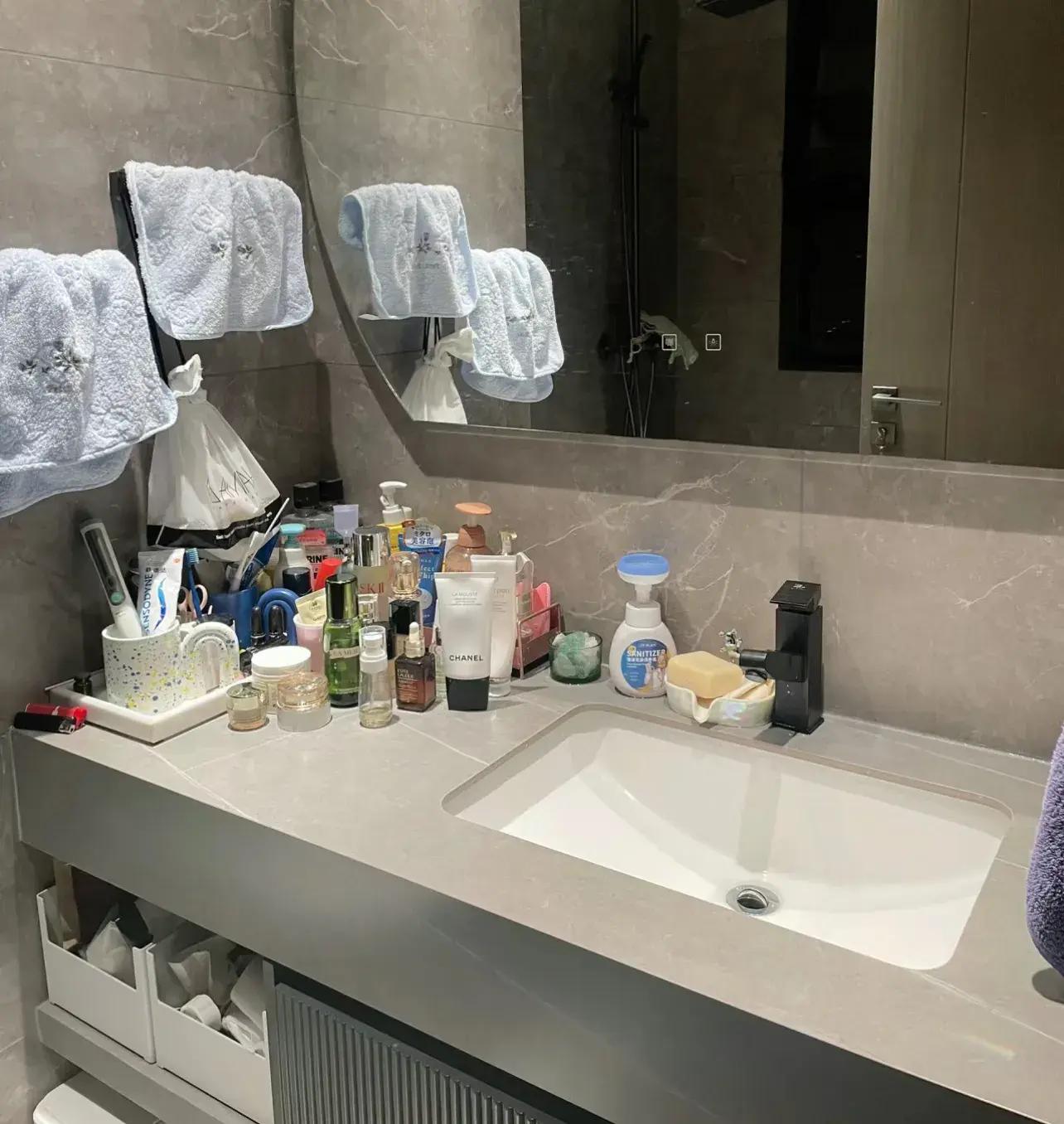 每次洗臉時,都得刻意侷促,生怕把哪個貴重的護膚品打翻了。