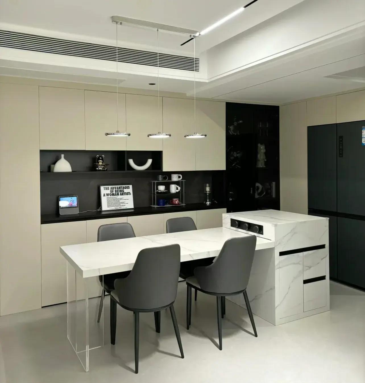 另外,中空格,擺上飲水設備、咖啡機,還是家裏水吧檯,甚至冰箱也能嵌進去,整體性更好,功能非常強大。