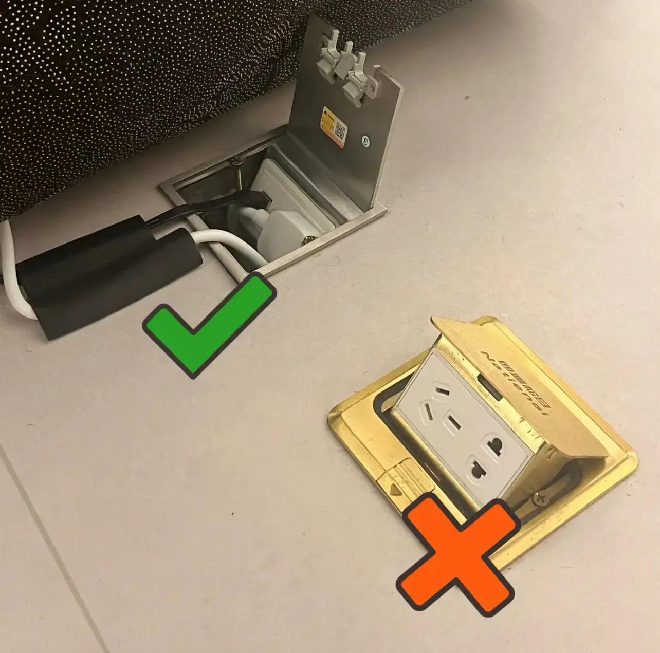 需要注意的是,連接插線板的地插,不能選擇插孔彈出來的款式。