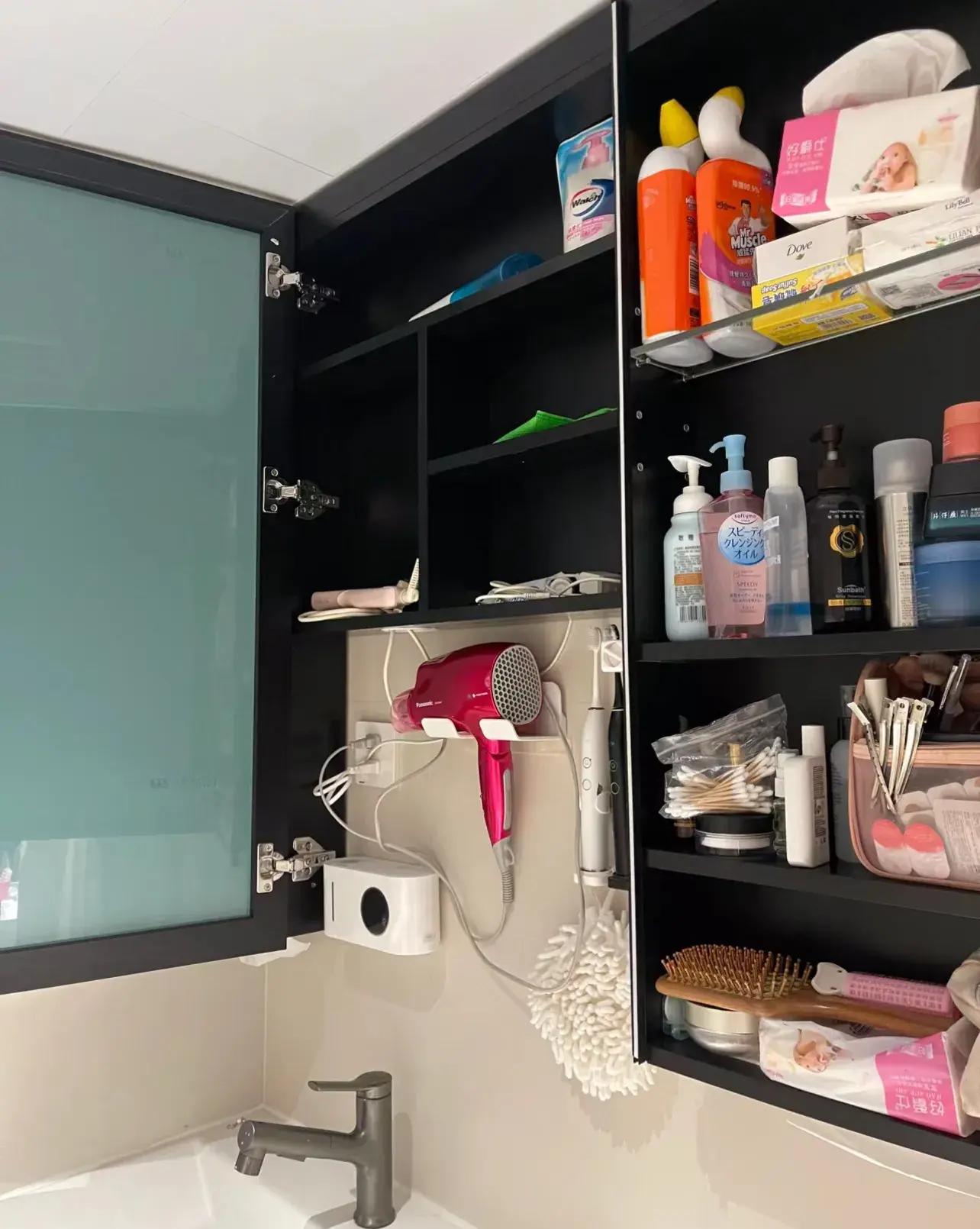衛生間的鏡子,換成鏡櫃,別看只有十幾公分的厚度,洗漱、化妝用品,全部塞進去,完全不成問題。