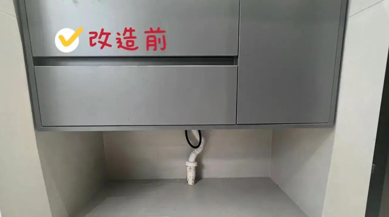 裝了懸空浴室,卻發現排水管做成了地排,後面有一條縱向水管,拖地礙事,看着也不美觀。