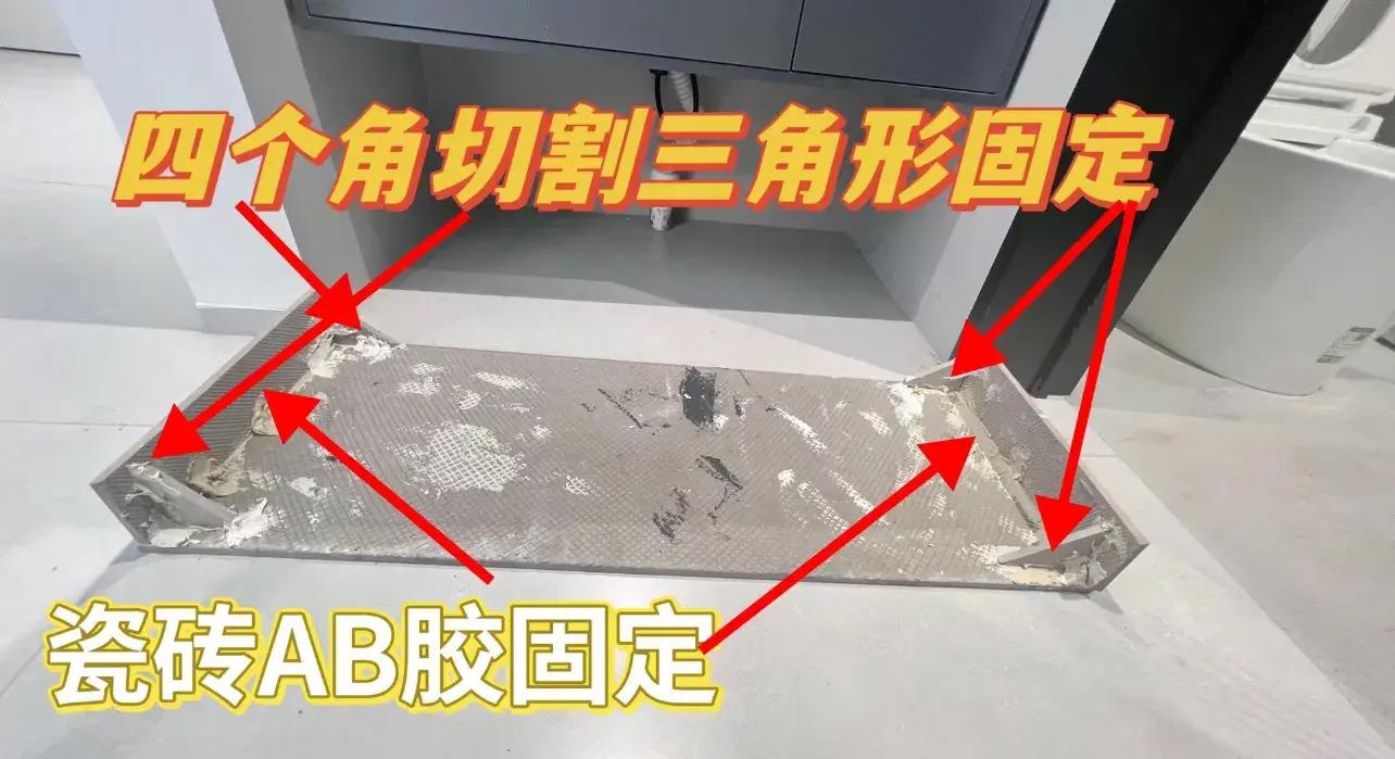 瓷磚之間用AB膠固定,非常牢固,同色瓷磚遮擋後的效果,也看不出來是補救過的。