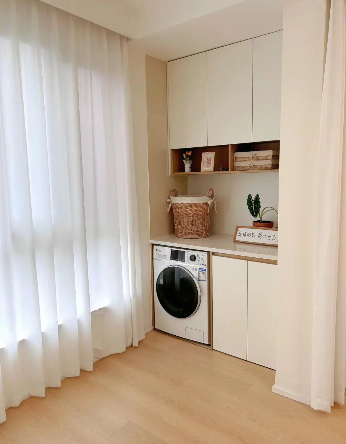 爲了避免這種情況,先瞻遠矚,把洗衣機做進櫃子裏,後期一來有雜物了塞進櫃子裏;