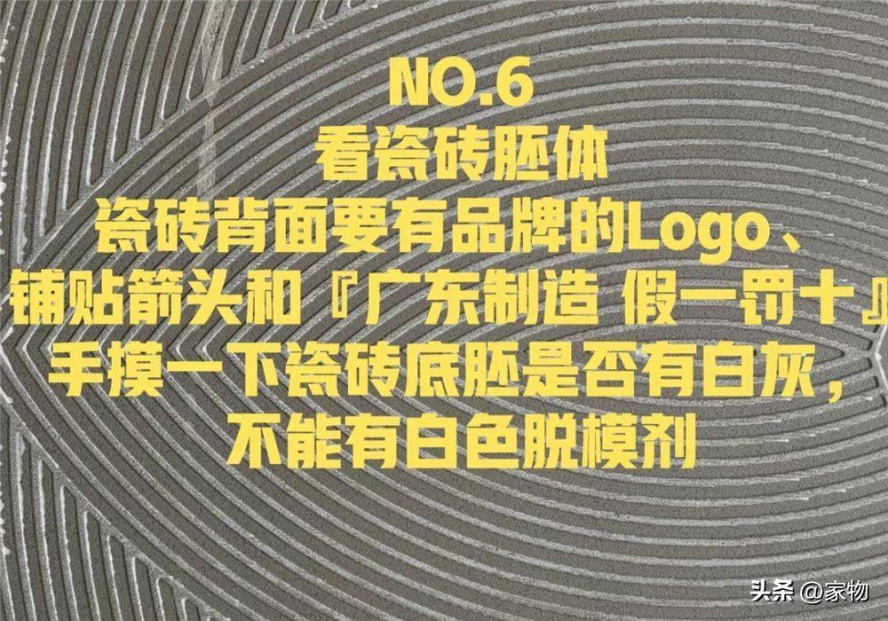 瓷磚底部的胚體,仔細觀察一下,有的品牌會把logo放到這裏,我們可以用手摸一下,是不是有白色的粉末狀灰塵,如果幹乾淨淨的,其實就沒什麼大問題。