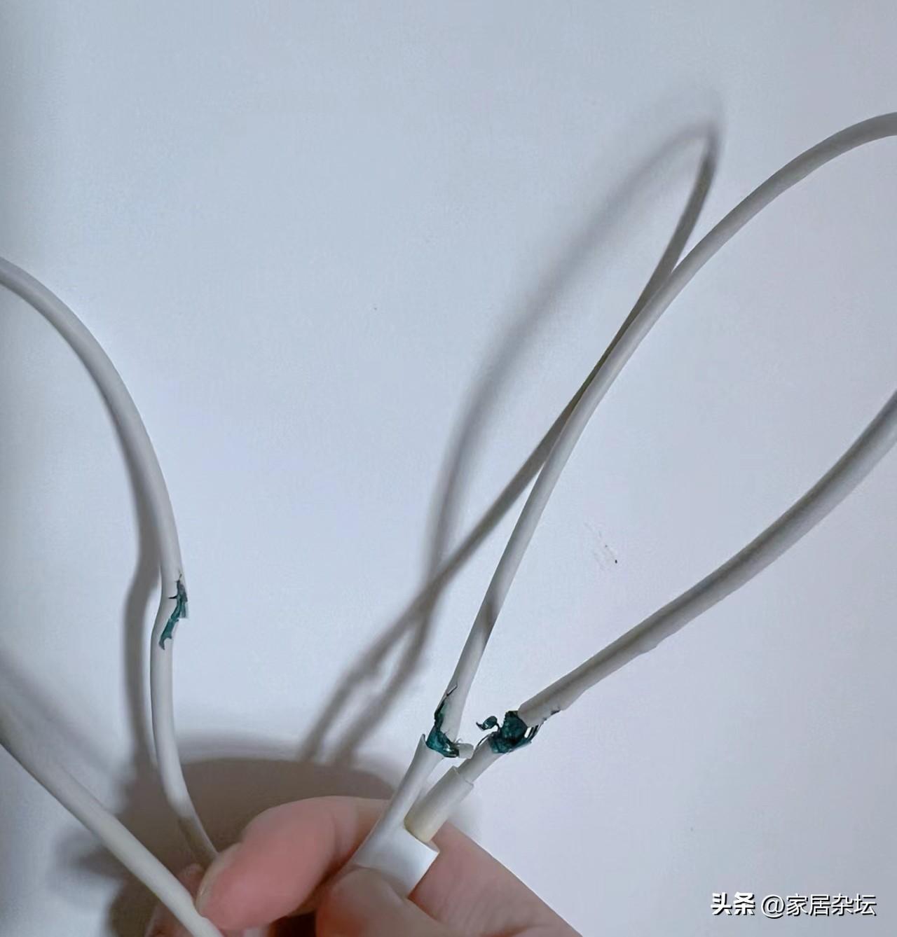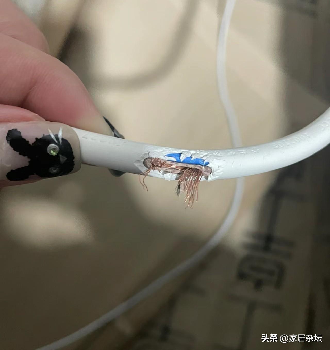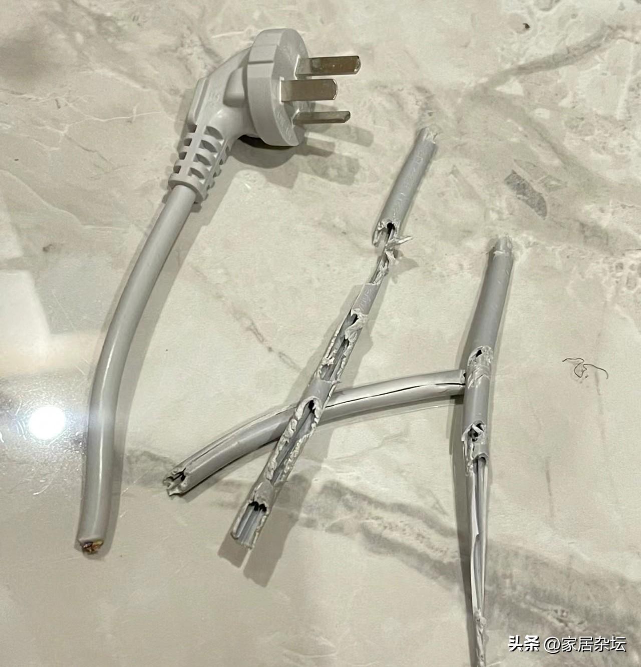 因爲可能由於我們使用的問題或者是寵物啃咬的問題,電源線外面的絕緣層就破損,漏出裏面的電芯。