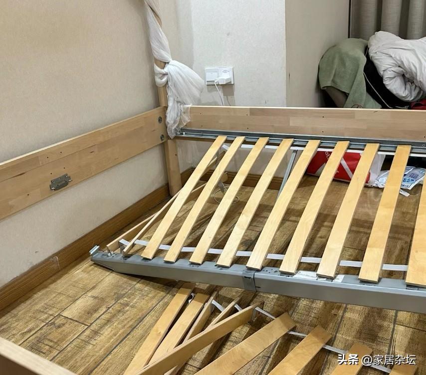 這個破牀,真是嚇了我一跳。孩子在上面蹦跳,牀左右亂晃,我還沒來得及制止,就發現牀塌了。幸好,孩子是摔在了牀上,要不就麻煩了。