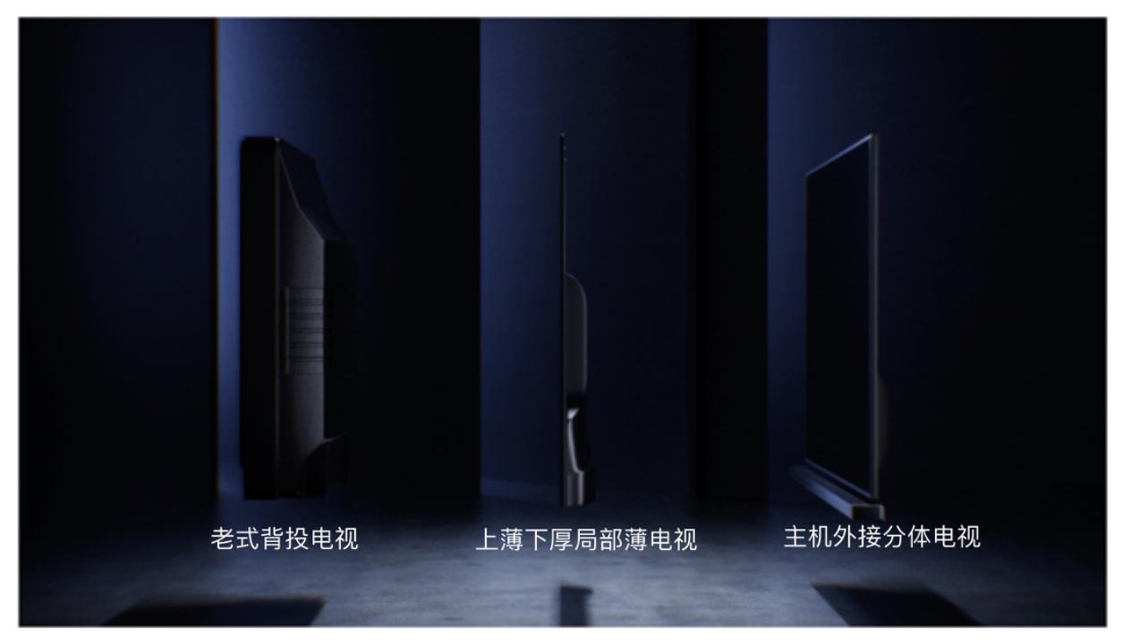 已經有不少廠商注意到了“小書包”的問題,奈何受制於技術突破,無法從根源上“壓扁”,從而想到了一個折中的辦法——採用分體式設計,從而把“小書包”從電視背部摘下來。分體式設計不僅犧牲了電視的整體性和美感,同時也給用戶帶來了不便。