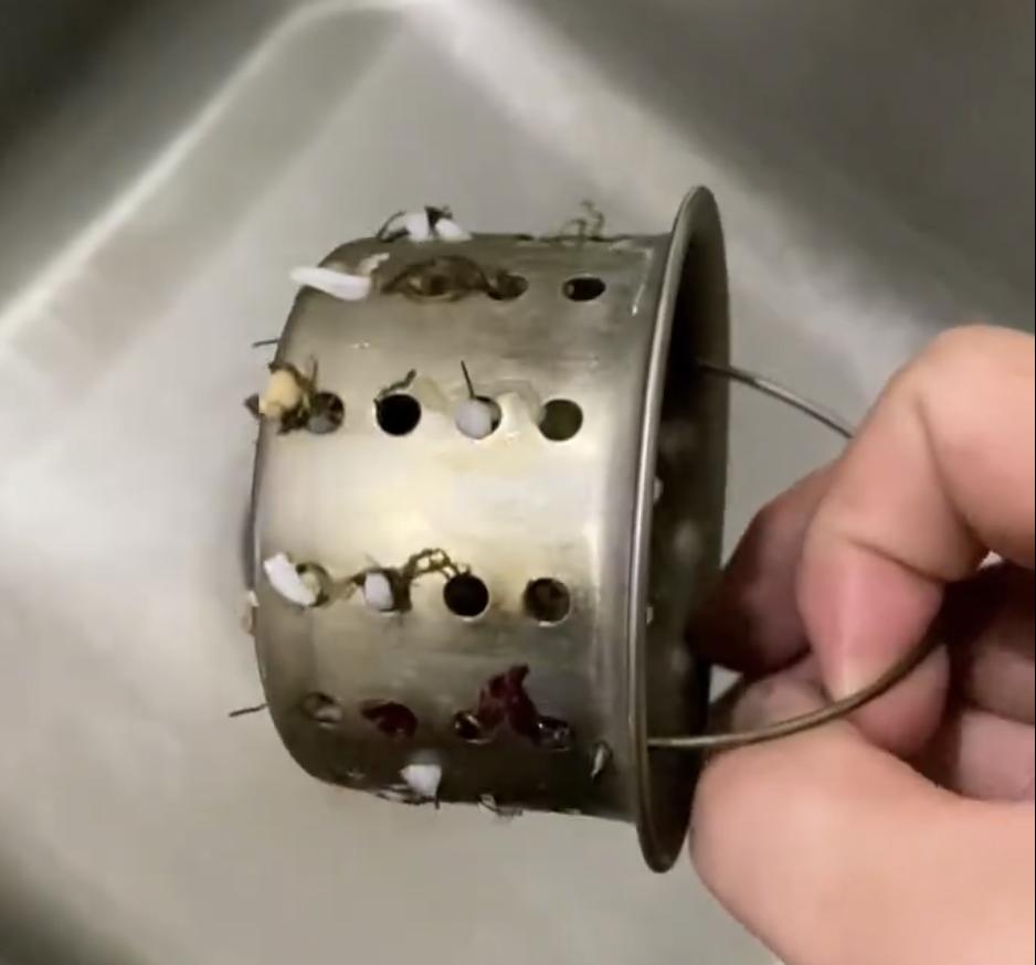 ▲傳統不鏽鋼水槽濾網,非常容易擁堵