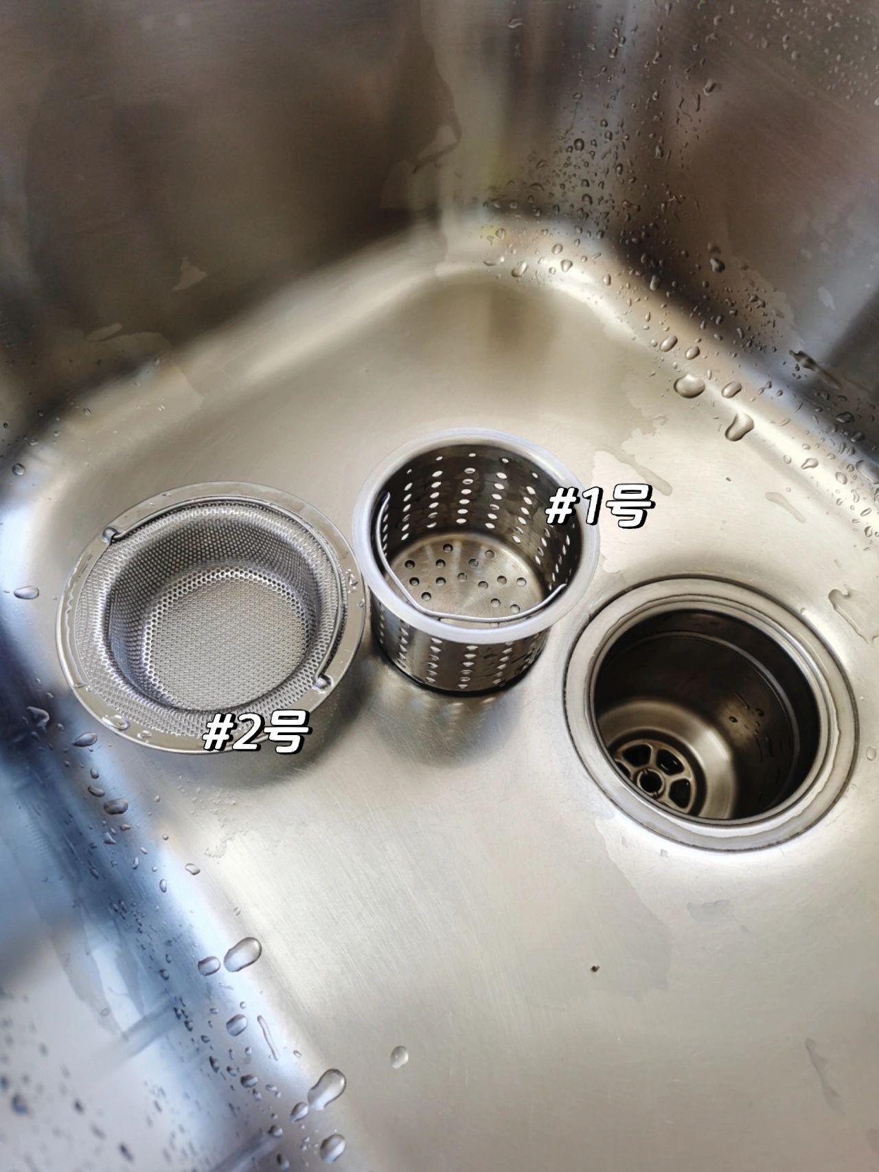 如今設計師們終於傾聽到了廣大消費者的聲音,發明升級了這種防堵的不鏽鋼水槽濾網,就是上圖中標註的“2號”這款。