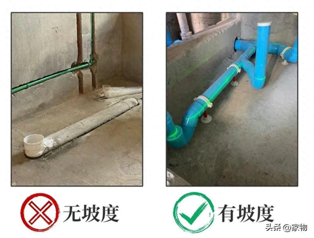 我發現很多人現在在衛生間排水管的坡度上踩了坑,按理說,新鋪的衛生間爲了不迴流,都要有一個排水坡度,尤其是陽臺的洗衣機,最起碼要有5%的坡度纔行哦。