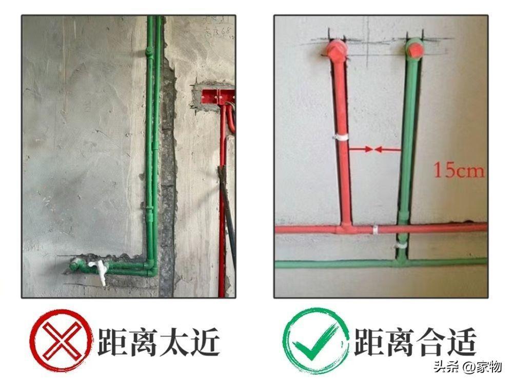 冷熱水管的距離如果太近了,多多少少會影響到冷熱水的供水效果,距離最好是有15CM左右,記住是左熱右冷,這點也是很多家庭裝水管時都會做錯的。