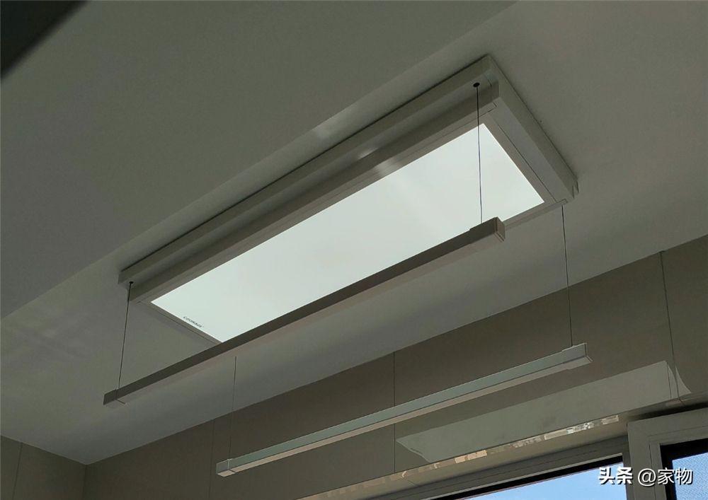 陽臺如果只有寥寥幾平米,空間不大的話,真的不建議大家做吊頂,做了吊頂就還得貼瓷磚,一來二去又壓縮了陽臺本就不大的空間,其實簡單裝個電動晾衣架,就足夠日常使用的了。
