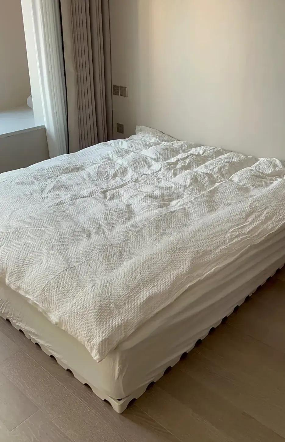 然後是美觀度,說實話,沒有那麼好看,但也不至於醜,甚至還有點類似於小裙邊的精緻感,尤其是搭配上白色的牀品之後。