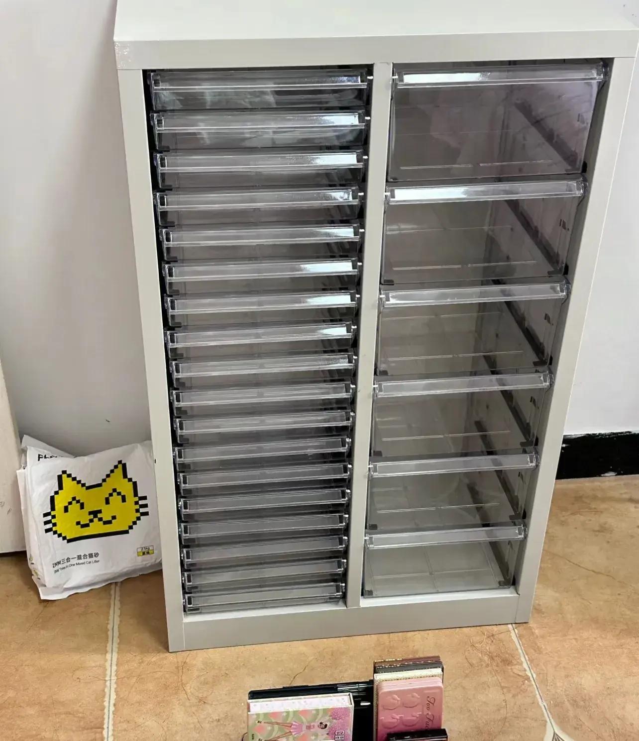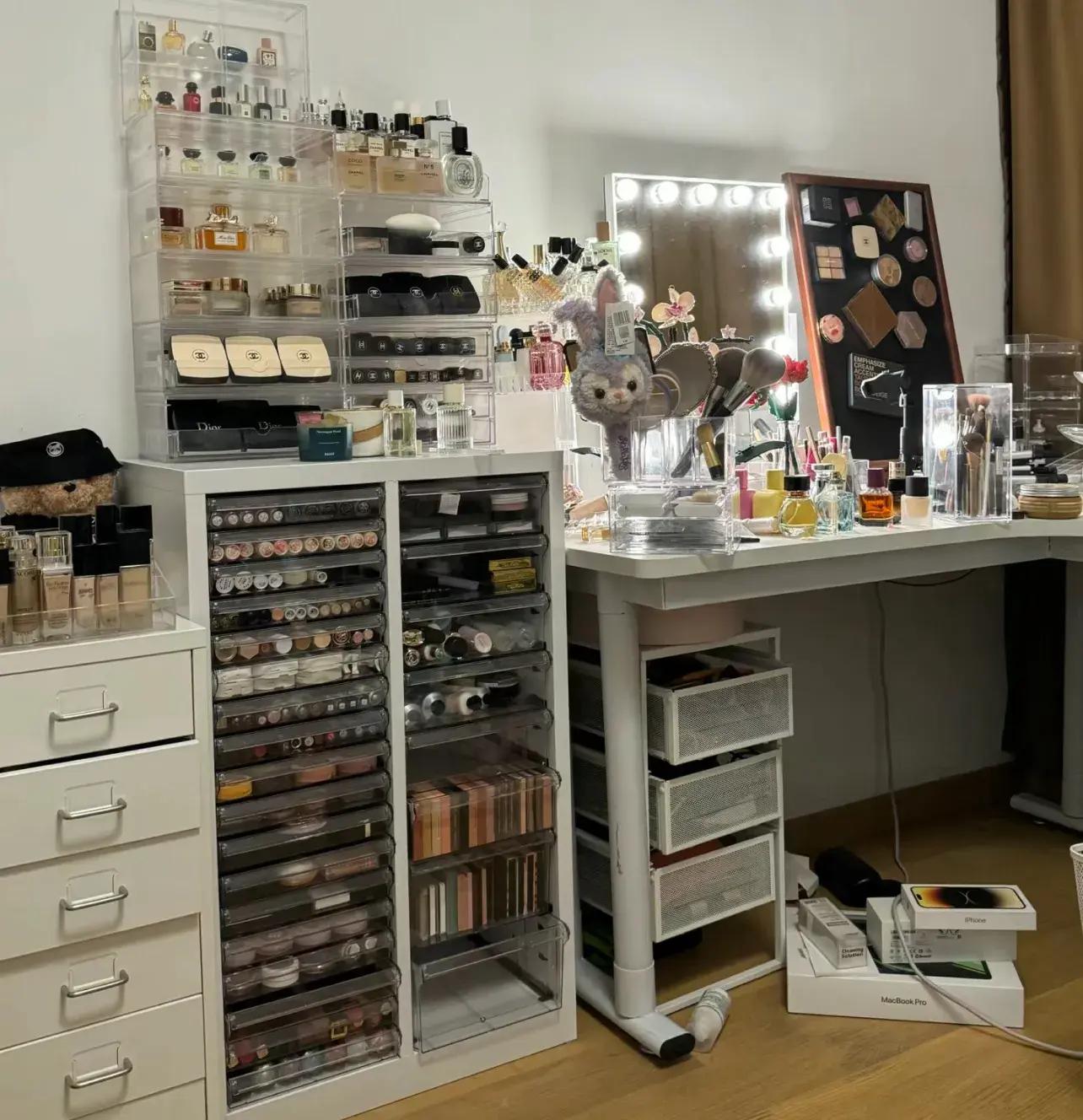 也不知道哪個大聰明想出來的,用文件櫃平替化妝品櫃的想法。