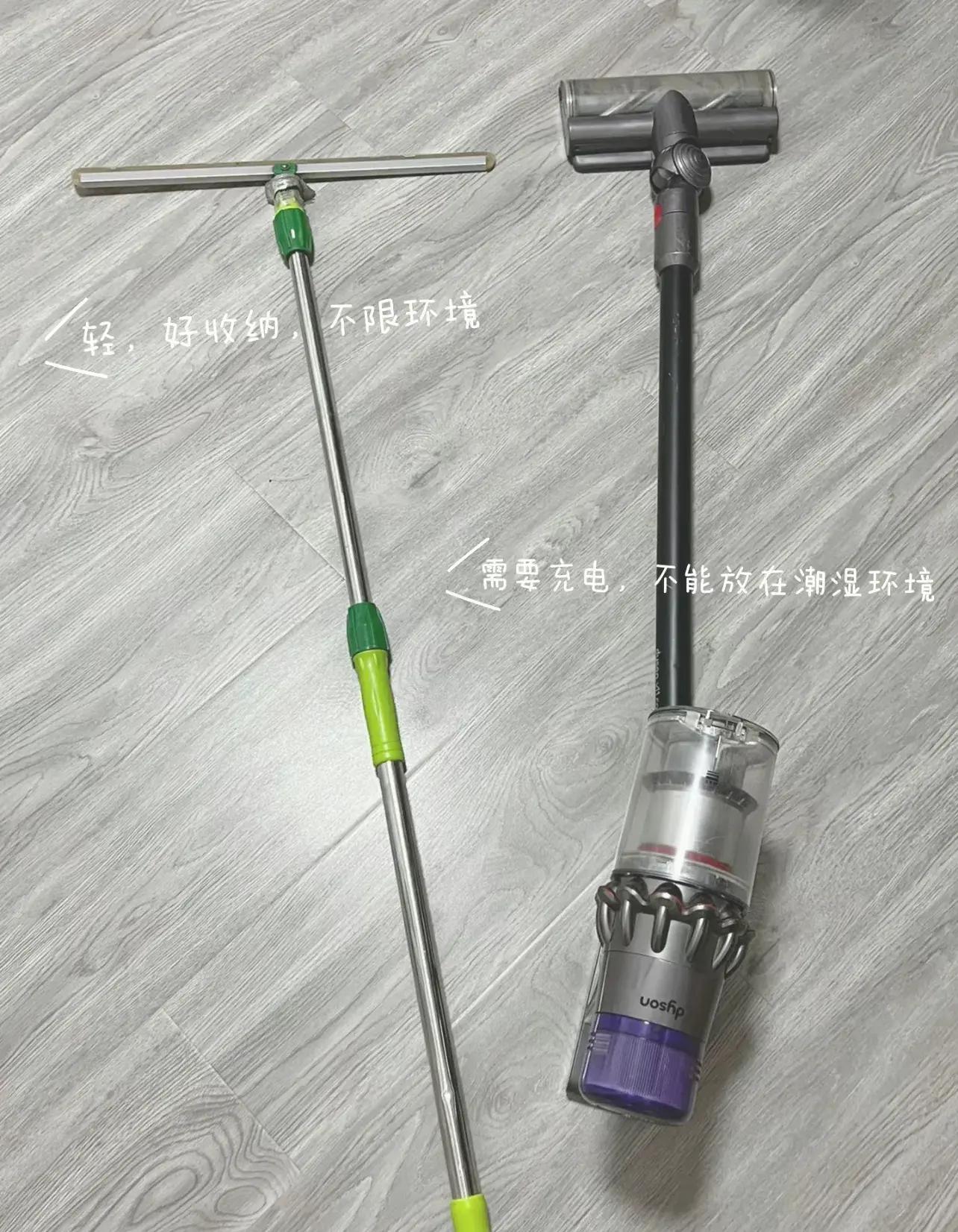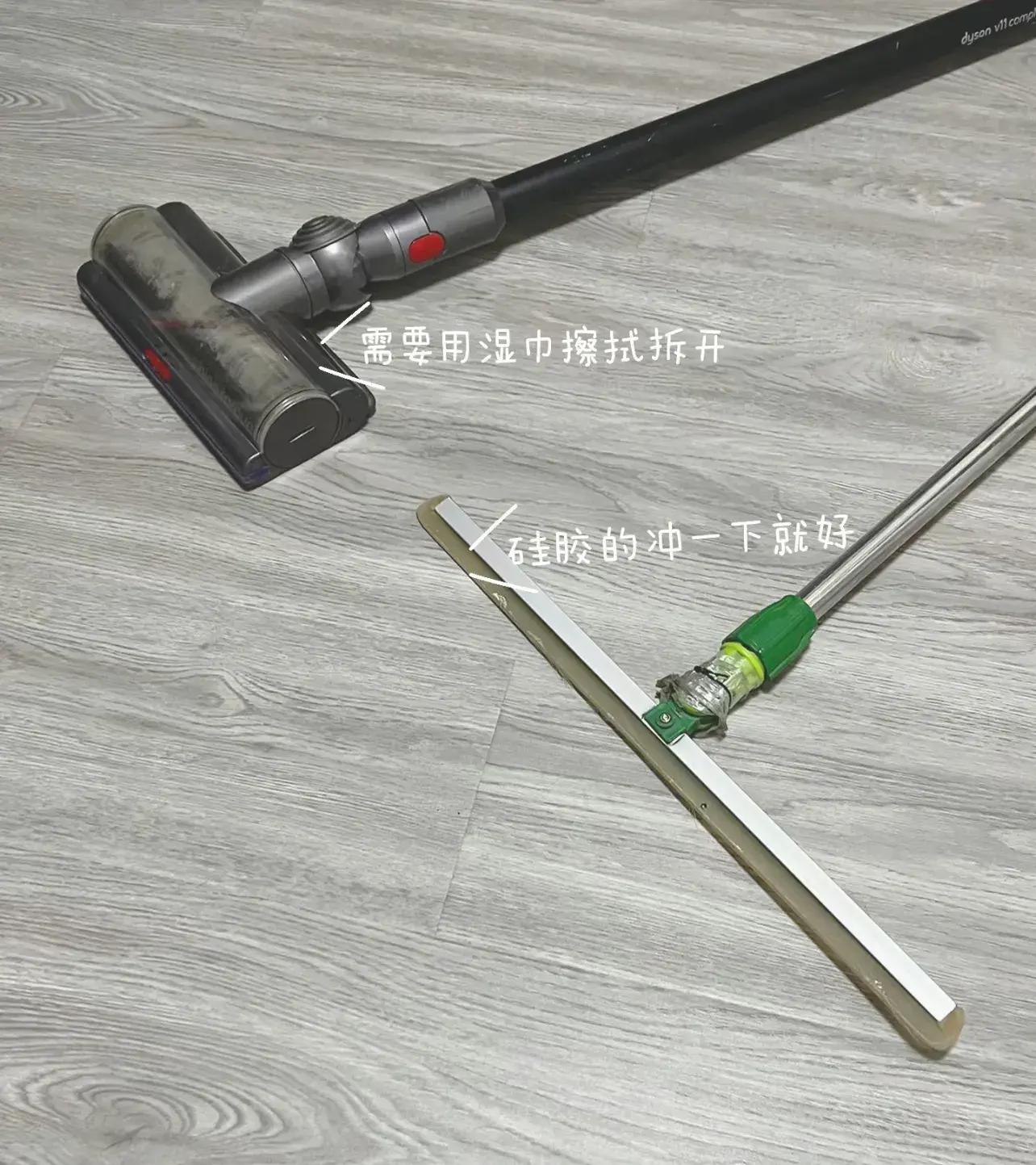 先是打掃時間,用吸塵器的時候確實很優雅,但是頭寬度有限,電機轉動速度有限,對我這急性子來說就是“磨洋工”,倒不如硅膠掃把50釐米的大長頭,三下五除二來的快捷。