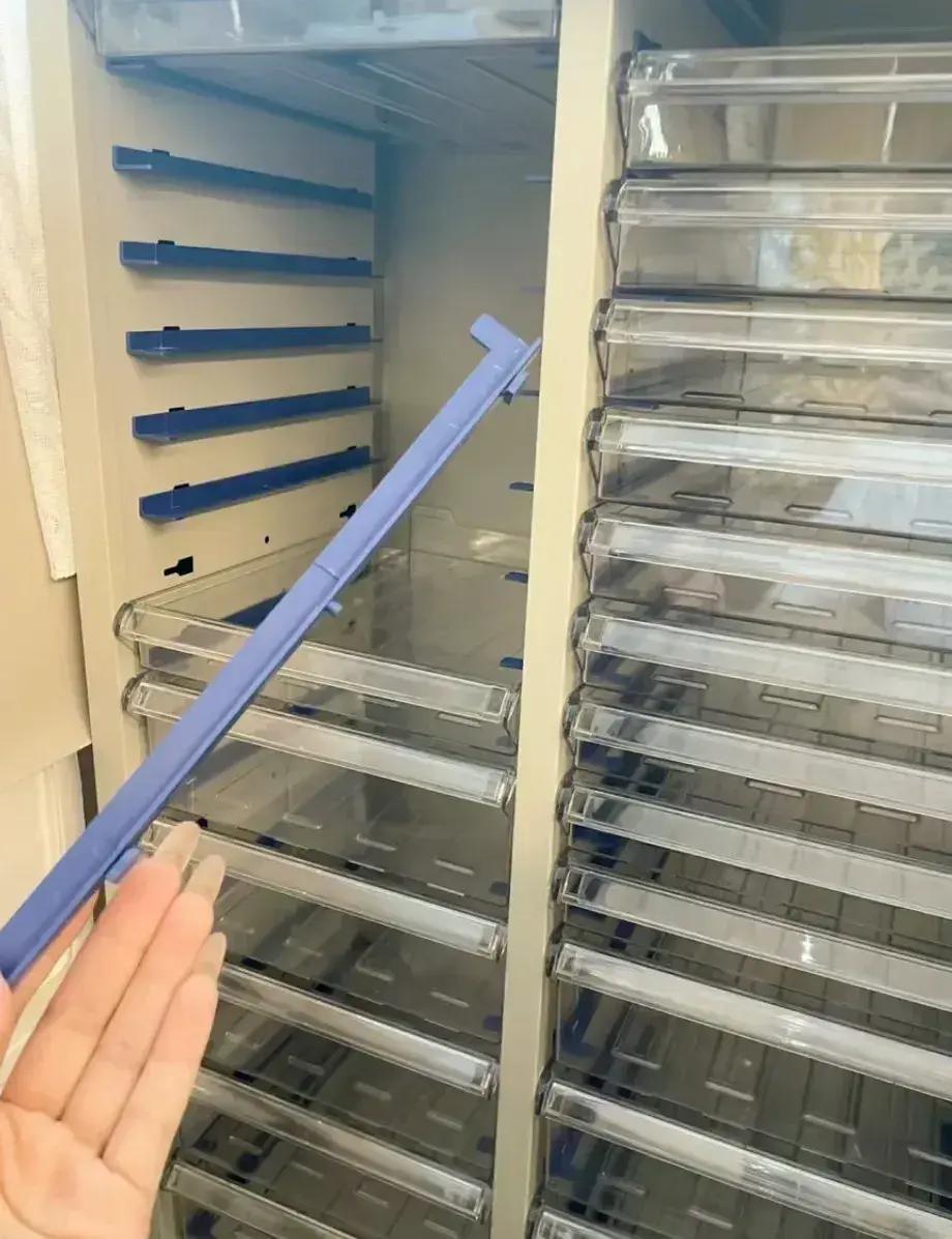 當然,單要說這些,還不足以讓我這個常年在家居界摸索的人動心,真正打動我的是裏面的抽屜層板是卡扣的,可以任意調節。