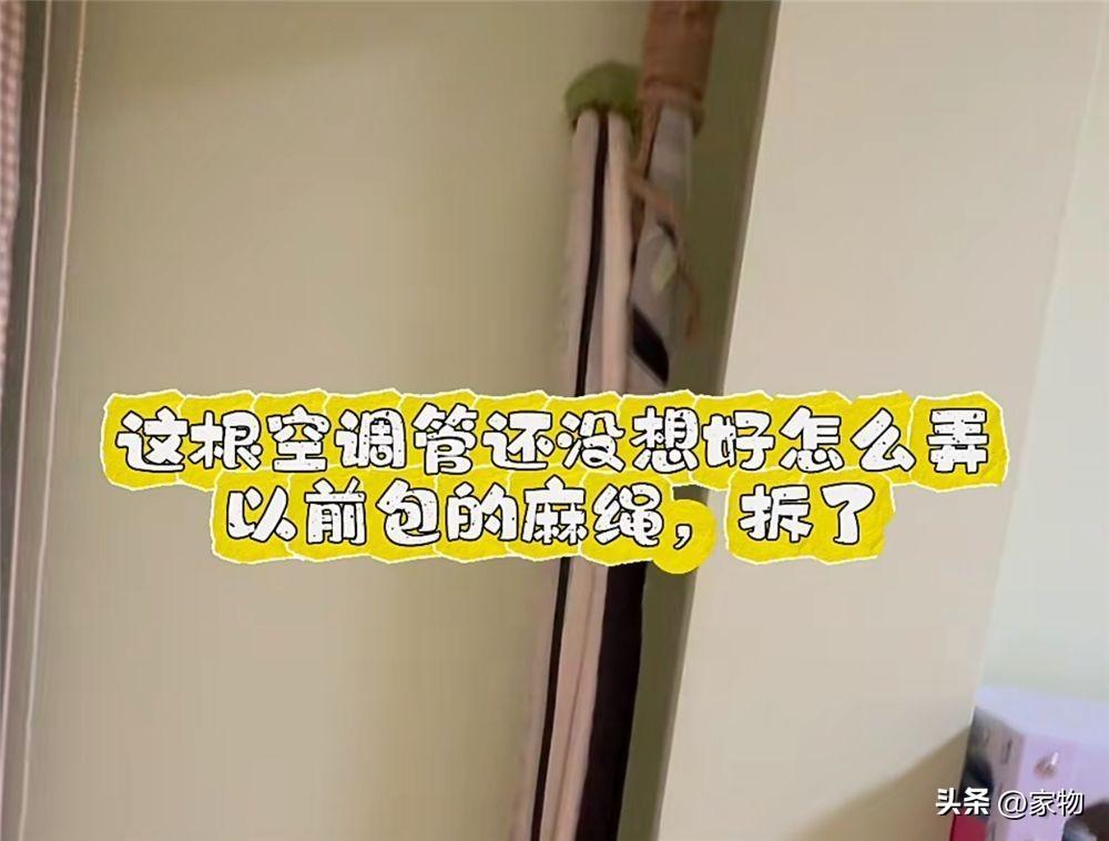 哦對了,牀頭隔板上面還有一根空調管子,本身是用麻繩包裹裝飾好了的,但隨着使用時間延長,逐漸積灰落塵變得髒污,還是拆掉了,好在管子在承重柱後面,平時從外面看也看不到。