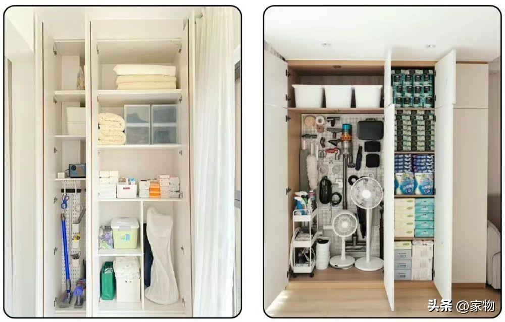 不少人覺得,陽臺做多層收納格能放下更多東西,但做完以後才發現,要放的都是大件,還不如做成背面洞洞板的開放掛格,能收納更多清潔工具或不用的雜物。