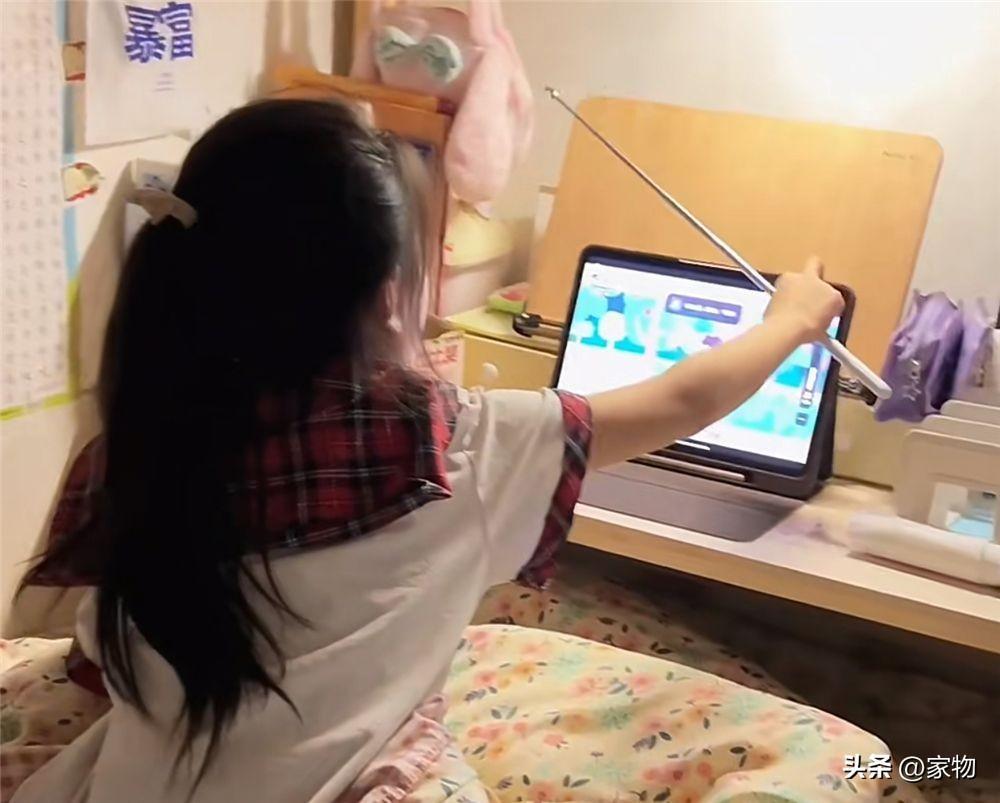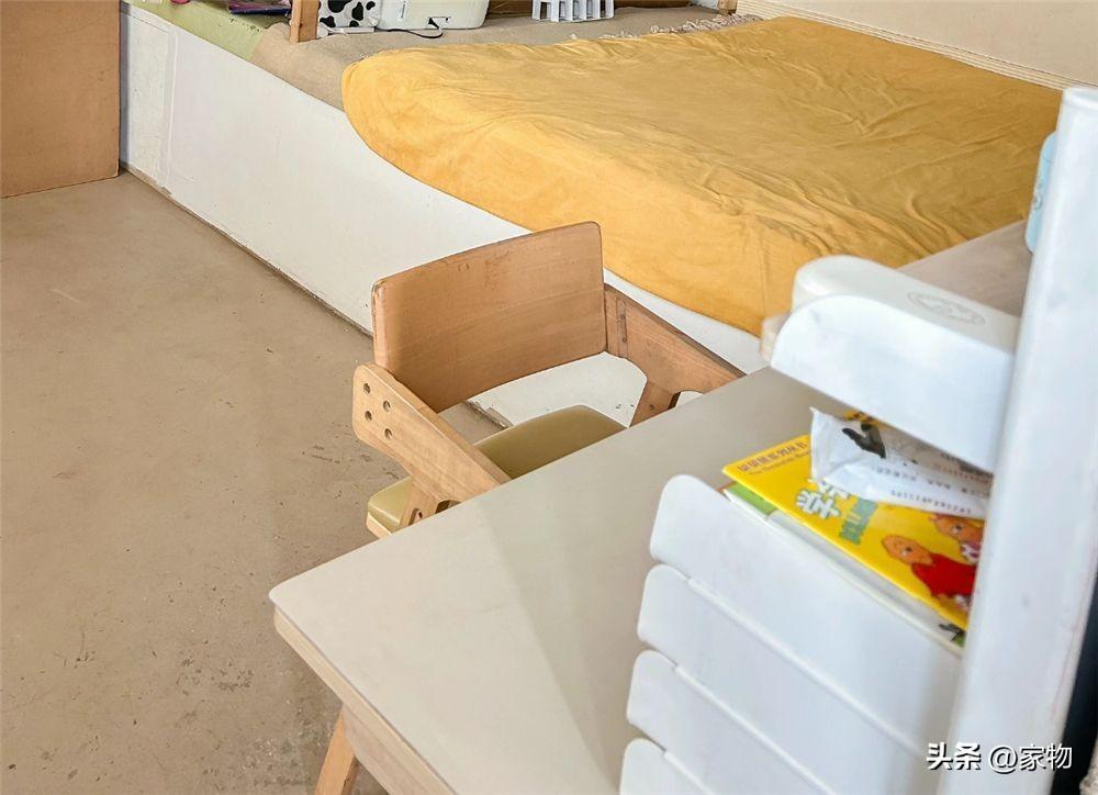 與此同時,女兒在牀鋪尾端放上一張小桌臺,這裏又能變成一個簡單的學習桌。