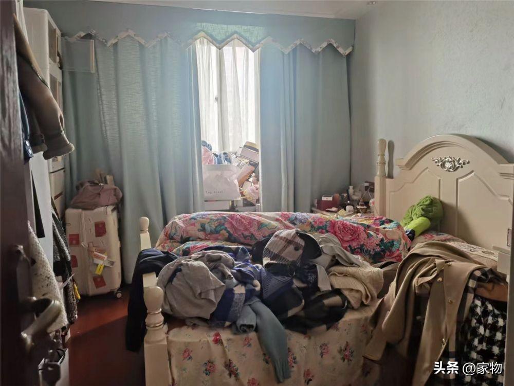 說老鼠來到這個家都得開導航,雖然有些誇張,但實際情況也確實是讓人有些沒眼看,主臥室裏的飄窗上,仍舊是屋主的衣服,遮擋住了半扇窗戶,只能靠燈具照明。