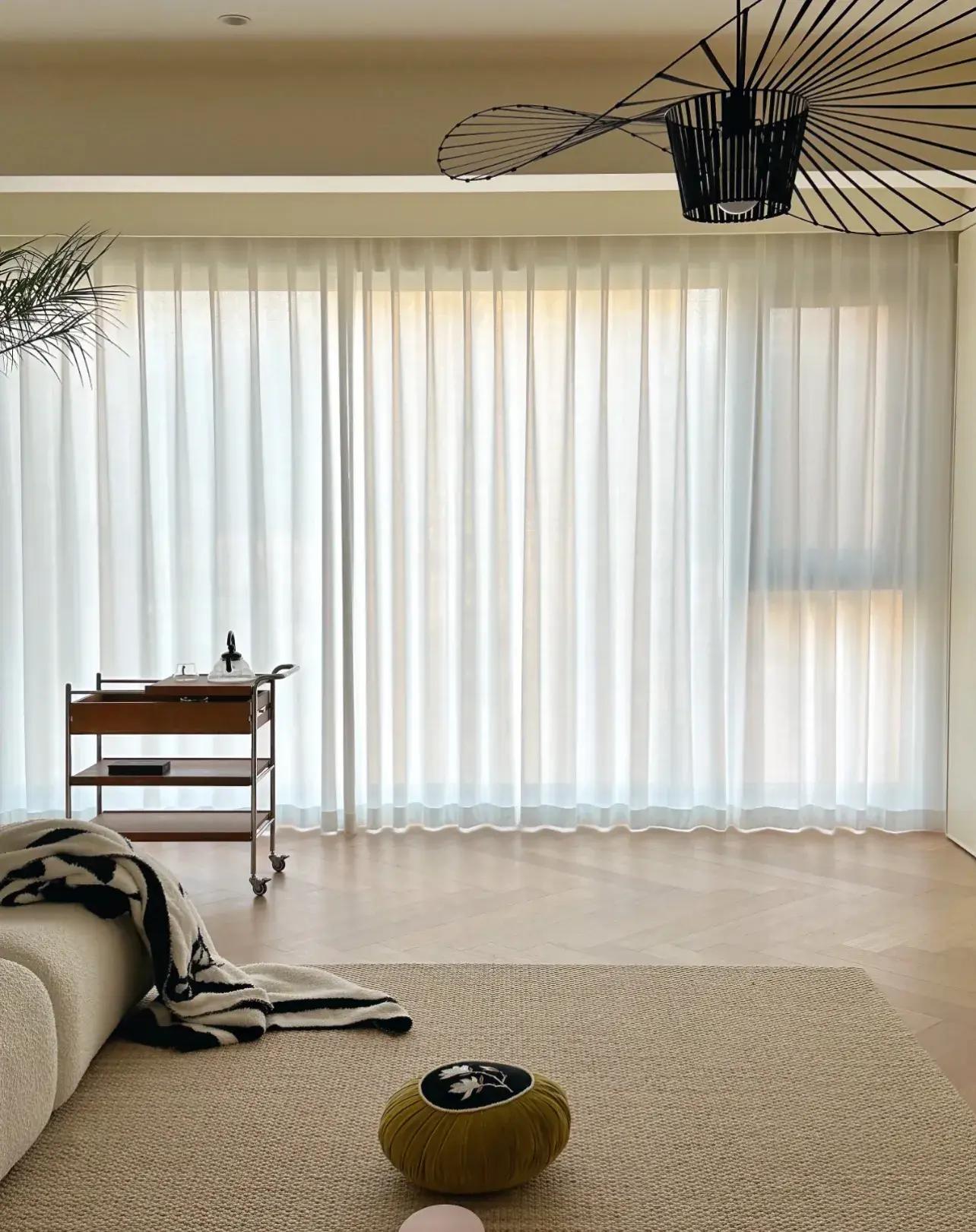 臥室要睡好覺,一定得用不透光的遮光簾;客廳除非有投影,否則就沒有任何必要做布簾。