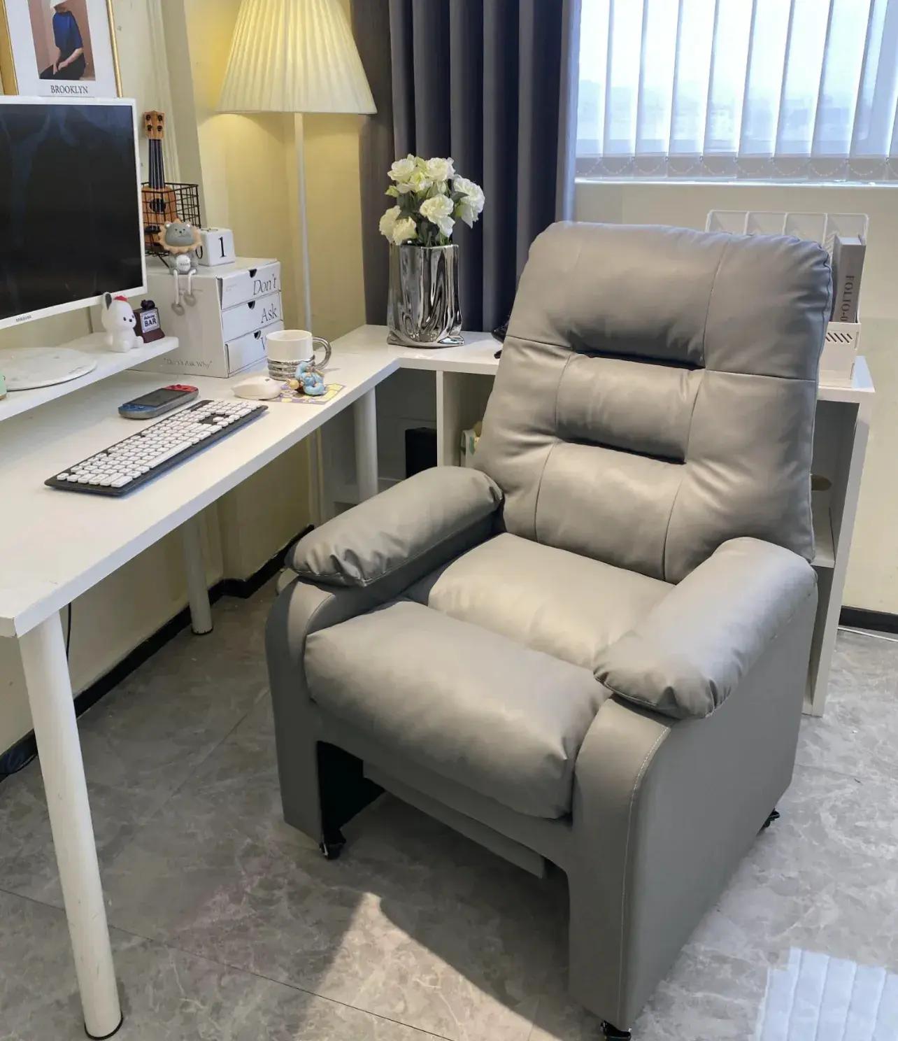 很多人會給書桌配單人沙發,不建議,書桌椅子是久坐的椅子,最好的選擇還是人體工學椅。