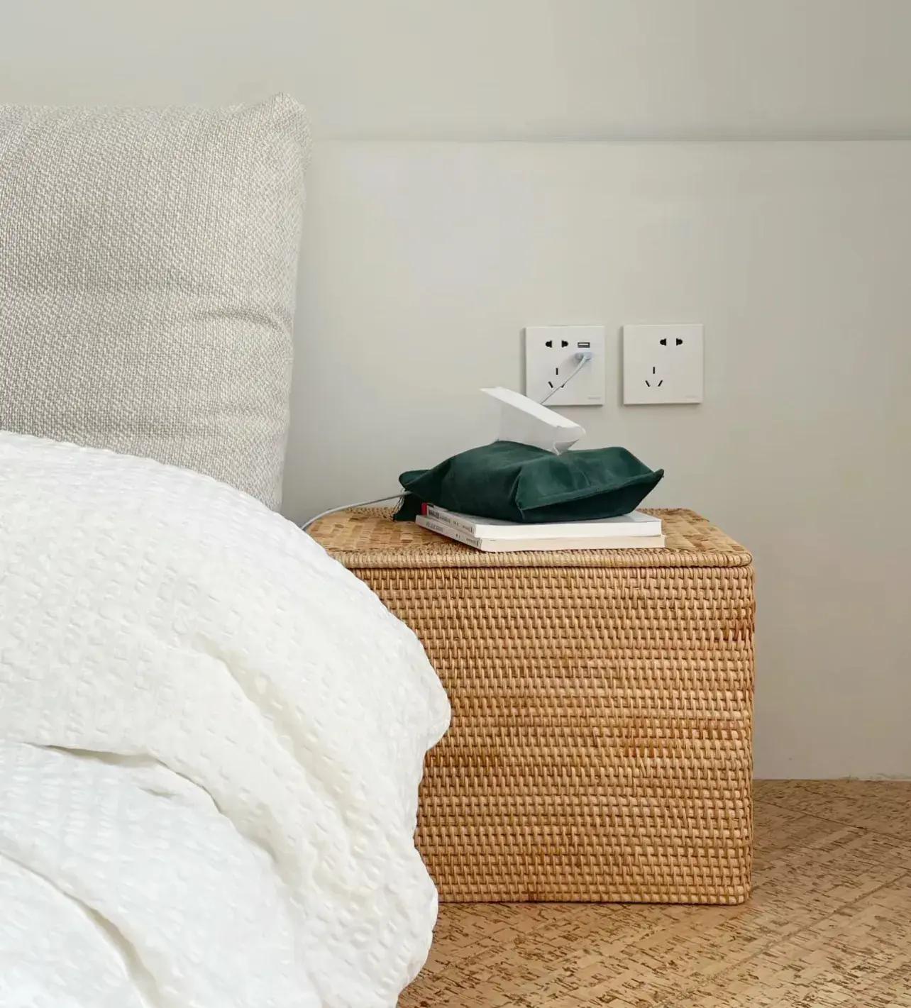 現在的推車置物架、邊幾、甚至箱子、小桌板,那個都是比牀頭櫃便宜,還比牀頭櫃好看的主兒。