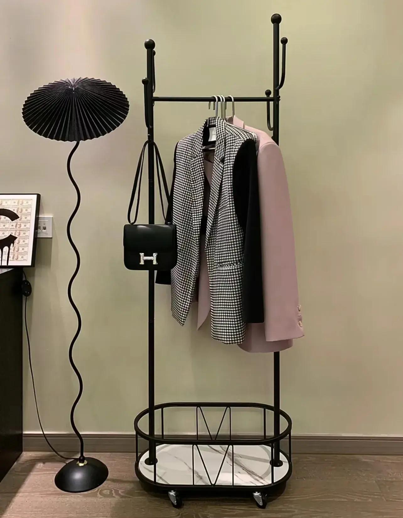 臥室衣架,要用就用這種橫杆的,上面掛衣服,底下帶髒衣籃的,放好幾件次淨衣也不顯亂。