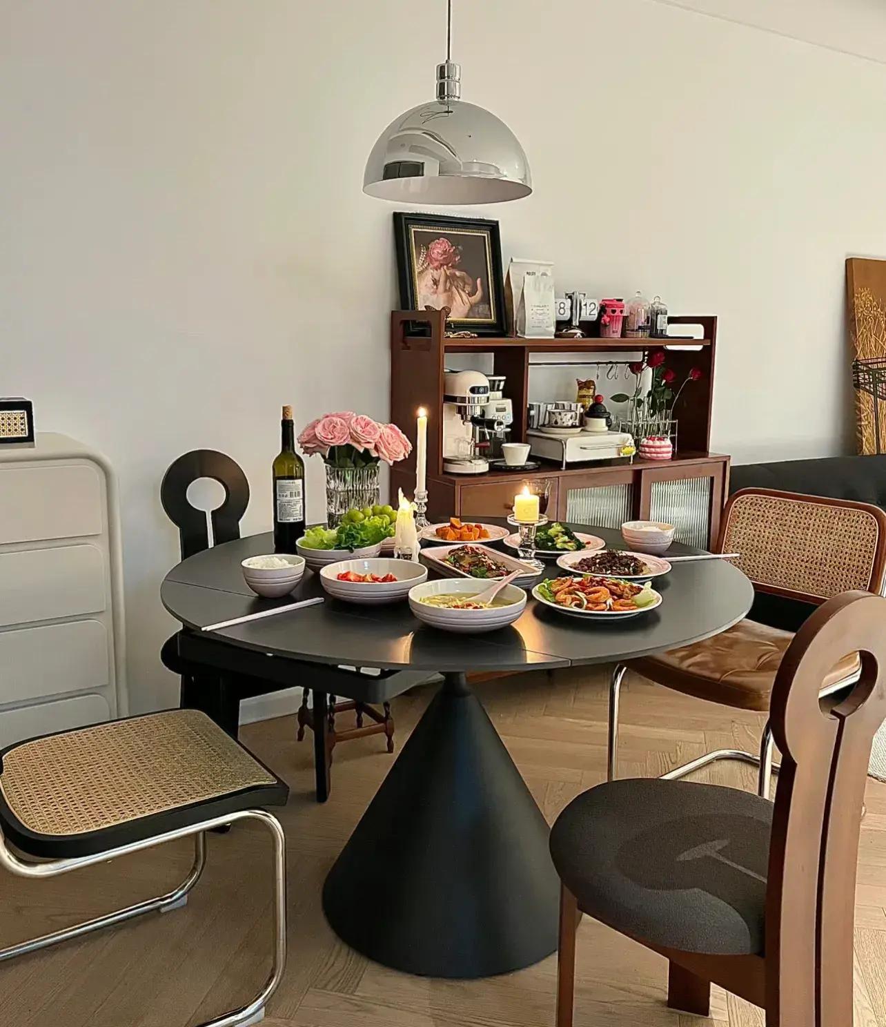 如果單獨爲了喫飯,家裏人又多還是更建議圓桌,小戶型可以用方桌。