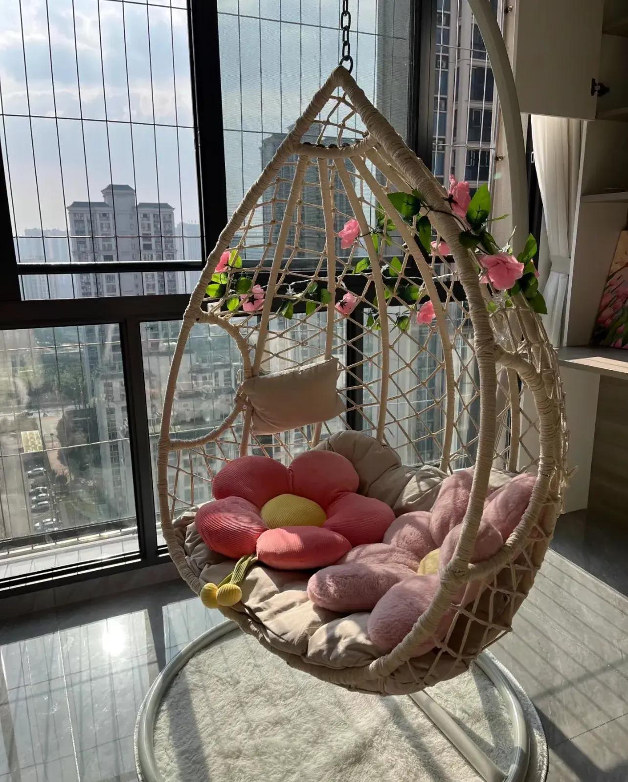 類似於吊牀,看着禪意十足,實際上坐着一點也不舒服、一點也不快樂。