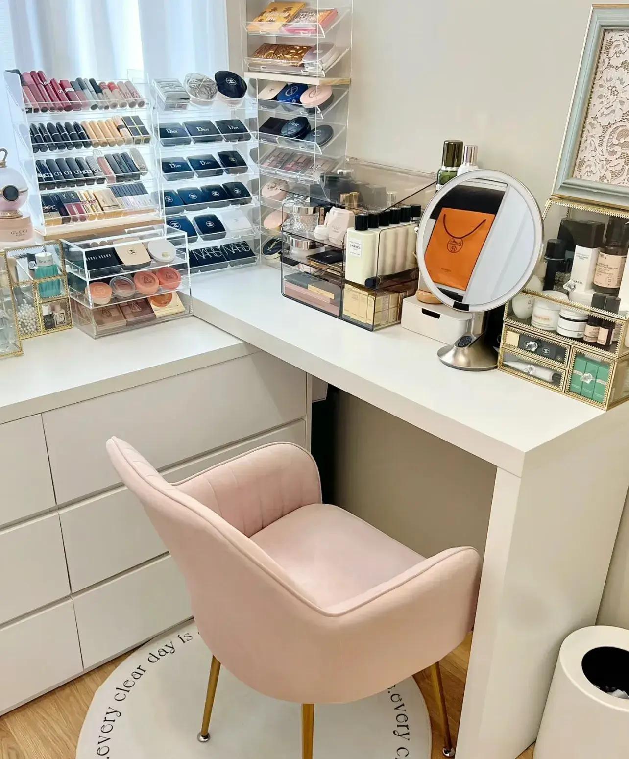 但裝了女主人還真不一定用,我看好多女孩家裏明明有梳妝檯,最終還是跑到洗漱臺去化妝,梳妝檯更多時候是一個收納化妝品的地方。