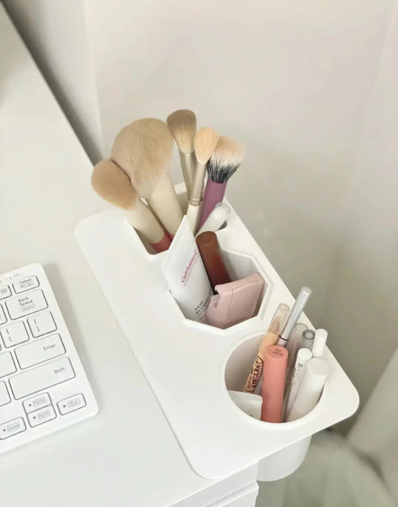 之後,我還增加了一個,專門放化妝刷,這些東西,可以在書桌上直接化妝。