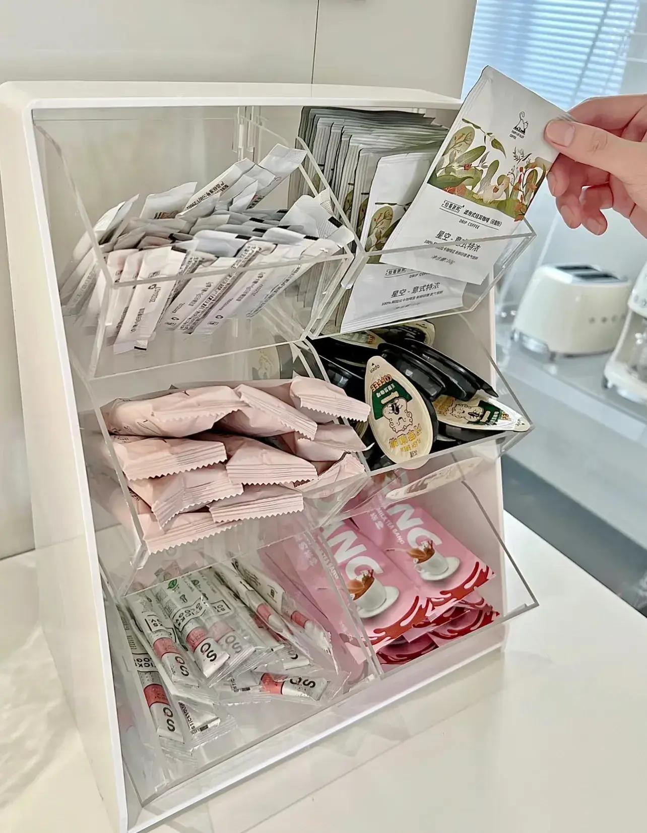茶包可分類放置,看着不亂,拿取也極其方便。